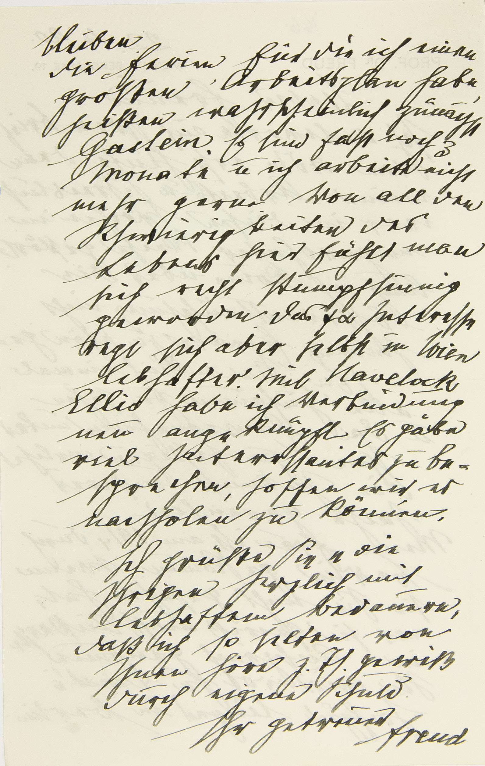 Lebens hier fühlt man sich recht stumpfsinnig geworden. Das ya Interesse regt sich aber selbst in Wien lebhafter. Mit Havelock Ellis habe ich Verbindung neu angeknüpft. Es gäbe viel Interessantes zu besprechen, hoffen wir, es nachholen zu können.