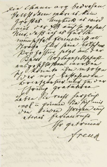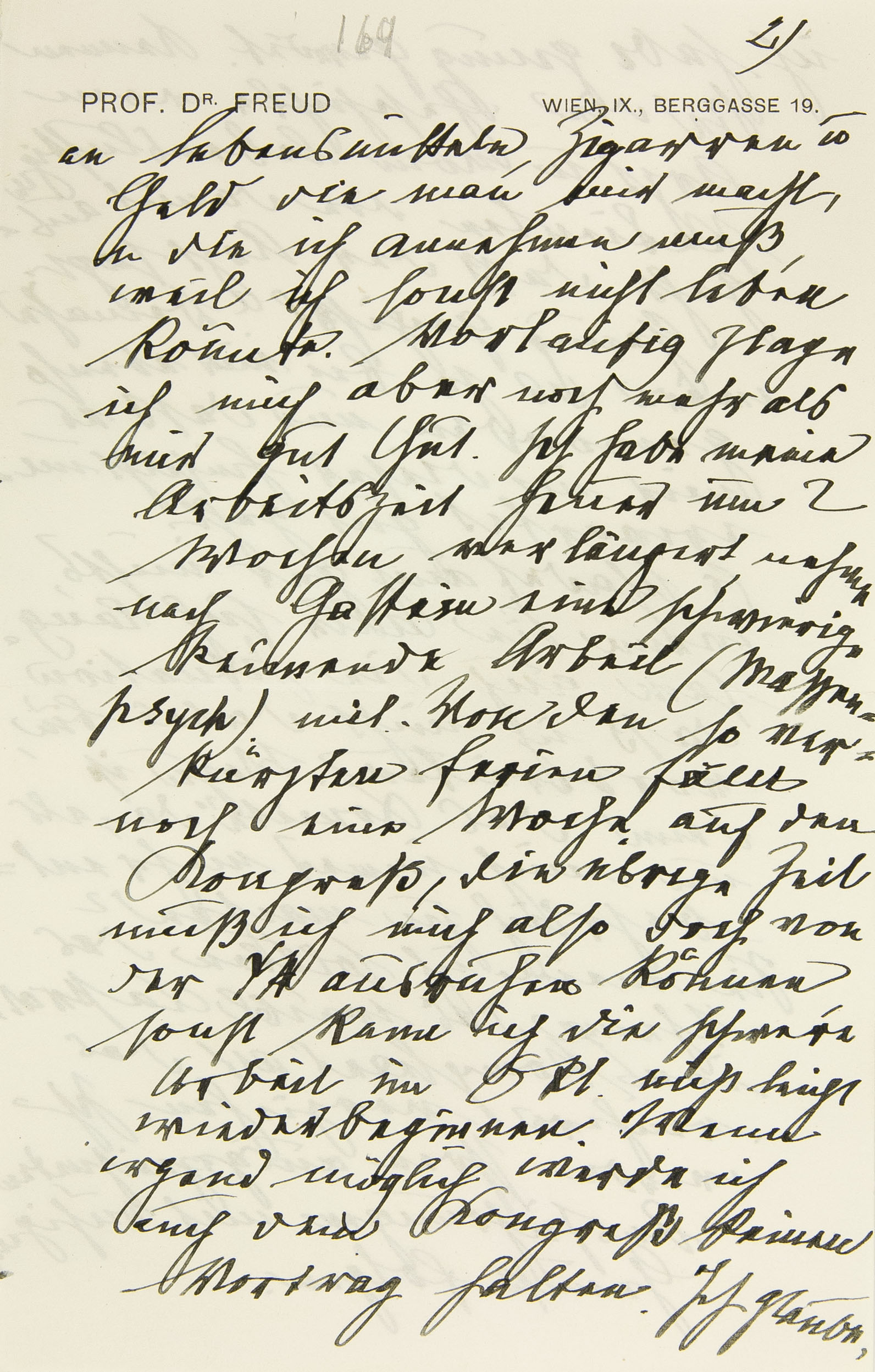 Ich höre Sie haben Rank nach Berlin zitiert. Das wird, fürchte ich, an der Überdeterminierung für sein Hierbleiben scheitern. Aber der Bewerber ist in Wien willkommen, und alles andere kann, besonders wenn Sachs schon da ist, brieflich oder auf dem Kongreß erledigt werden. Von Urban & Schwarzenberg habe ich noch keine Antwort, ich hoffe sie sind verständig genug, in den Tausch zu willigen. Sonst bekommen sie eben gar nichts. Ihre Sache beim Ministerium sehe ich noch immer skeptisch an.
