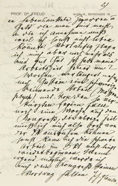 an Lebensmitteln, Zigarren und Geld, die man mir macht, und die ich annehmen muß, weil ich sonst nicht leben könnte. Vorläufig plage ich mich aber noch mehr, als mir gut tut. Ich habe meine Arbeitszeit heuer um zwei Wochen verlängert, nehme nach Gastein eine schwierige keimende Arbeit (Massenpsychologie) mit. Von den so verkürzten Ferien fällt noch eine Woche auf den Kongreß, die übrige Zeit muß ich mich also doch von der Psychoanalyse ausruhen können, sonst kann ich die schwere Arbeit im Oktober nicht leicht wiederbeginnen. Wenn irgend möglich, werde ich auch dem Kongreß keinen Vortrag halten. Ich glaube,