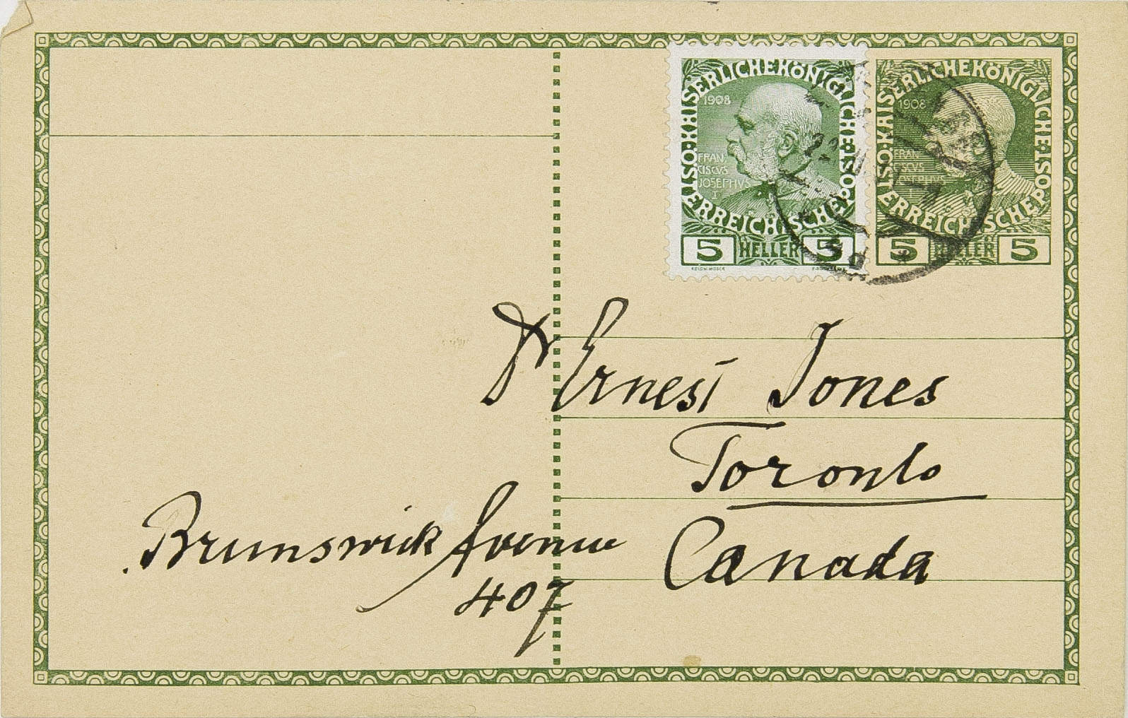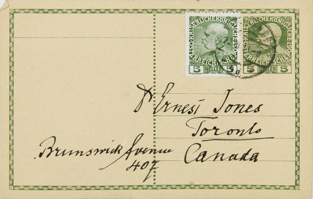 Weitere Briefe dieser Korrespondenz 1908-11-20 1909-02-22 1909-02-28 1909-05-18 1909-06-01 1909-10-23 1909-10-29 1909-10-31 1910-01-11 1910-01-27 1910-03-10 1910-04-15 1910-05-22 1910-07-03 1910-11-06 1910-11-20 1910-12-18 1911-01-22 1911-02-12 1911-02-22 1911-02-26 1911-03-02 1911-05-14 1911-06-25 1911-08-05 1911-08-09 1911-11-05 1911-12-18 1912-01-14 1912-02-24 1912-04-24 1912-04-28 1912-07-22 1912-08-01 1912-08-11 1912-08-18 1912-08-22 1912-09-03 1912-09-07 1912-09-14 1912-09-16 1912-09-22 1912-10-28 1912-11-08 1912-11-11 1912-11-14 1912-11-15 1912-11-16 1912-11-21 1912-12-08 1912-12-26 1913-01-01 1913-02-10 1913-03-05 1913-04-09 1913-06-08 1913-06-20 1913-06-26 1913-07-11 1913-11-03 1913-11-08 1917-03-06 1918-04-11 1920-03-19 1920-10-05 1920-10-14 1920-10-21 1920-10-28 1920-11-04 1920-11-18 1920-11-25 1920-12-05 1921-01-01 1921-01-21 1921-02-01 1921-02-11 1921-02-21 1921-03-01 1921-03-18 1921-04-01 1921-04-21 1921-05-08 1921-05-21 1921-06-01 1921-06-11 1921-06-21 1921-07-01 1921-07-11 1921-08-01 1921-08-25 1921-10-11 1921-10-21 1921-11-01 1921-11-17 1921-12-01 1921-12-11 1921-12-21 1922-01-11 1922-01-22 1922-02-03 1922-02-12 1922-02-21 1922-03-02 1922-03-15 1922-04-01 1922-04-07 1922-04-15 1922-05-04 1922-05-15 1922-06-01 1922-06-15 1922-07-01 1922-08-24 1922-10-19 1922-11-01 1922-11-15 1922-11-26 1922-12-15 1923-01-03 1923-02-01 1923-02-18 1923-02-28 1923-03-18 1923-05-01 1923-09-26 1923-11-01 1924-01-04 1924-02-03 1924-02-15 1924-02-25 1924-12-15 1925-01-13 1925-02-15 1925-03-15 1925-04-16 1925-05-13 1925-06-14 1925-10-20 1925-10-25 1925-11-15 1926-01-20 1926-02-18 1926-03-14 1926-06-28 1926-11-23 1927-01-21 1927-02-15 1930-05-07 1930-05-08 1930-05-12 1932-06-17 1932-09-12 1932-11-11 1933-01-13 1933-01-15 1933-02-24 1933-03-01 1933-04-07 1933-05-07 1933-05-29 1933-07-23 1933-08-23 1933-10-15 1933-11-26 1933-12-04 1938-04-23 1938-11-23 1939-03-08 Korrespondenz Autor(en) Freud, Sigmund Adressat(en) Jones, Ernest Datum 1911-02-22 Art Postkarte Absendeort Berggasse 19 Wien 1090 Oostenryk Zielort 407 Brunswick M5R 2Z2 ON Kanada Archiv Library of Congress, Freud Archives Archiv Signatur C30F35 Original/Kopie Original Medientyp Papier Vollständigkeit complete Zustand Unbeschädigt Status Faksimile Fertig ✔ Status Umschrift Fertig ✔ Status Metadaten Teilweise - Papierformat Karte Umfang/Blätter 1 Rect/Verso Recto/Verso Schriftart Handschrift Freud (Latein) Sprache Englisch Copyright Text Gemeinfrei Copyright/Verwertungsrecht Faksimile Es gelten die Nutzungsbestimmungen des Bestandsgebers