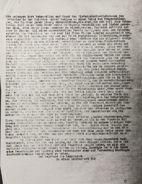 In Ihrem Bestreben den Kollegen eine Brücke zum Verständnis und zur Akzeptierung zu schlagen verweisen Sie gleich anfangs auf die altbekannte Mutterleibsphantasie, der ich nur eine besondere Stellung anweise. Nun gehört aber gerade die Aufzei¬gung der Mutterleibsrealität - wenn ich so sagen darf - zu den wesentlichen Grundlagen meiner Auffassung. Infolge dieses Missverständnisses sprechen Sie von der "phantastischen" Rückkehr in den Mutterleib, während es sich meiner Auffassung nach sowohl in den neurotischen Symptomen wie auch im Sexual¬act um weit mehr als bloß das, nämlich um ein teilweises Realisieren handelt.