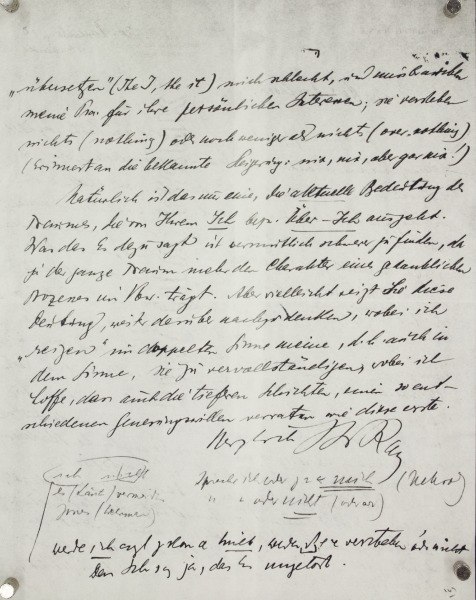 "übersetzen" (The I, the it) mich schlecht und missbrauchen meine Psa. für ihre persönlichen Interessen; sie verstehen nichts (nothing) oder noch weniger als nichts (over-nothing).["] (Erinnert an die bekannte Steigerung: nix, nix, aber gar nix!)