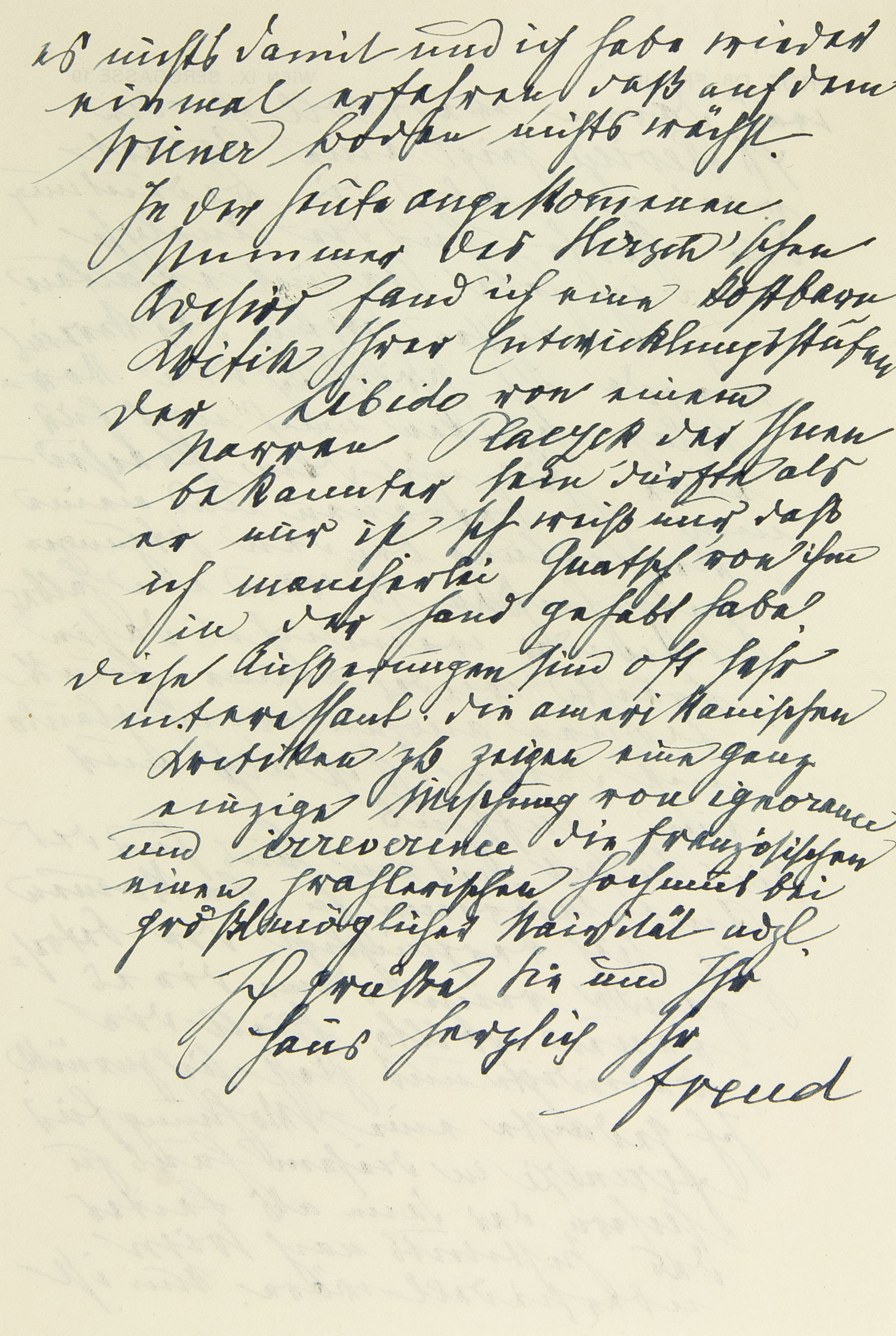In der heute angekommenen Nummer des Hirsch’schen Archivs fand ich eine kostbare Kritik Ihrer Entwicklungsstufen der Libido von einem Narren Placzek, der Ihnen bekannter sein dürfte, als er mir ist. Ich weiß nur, daß ich mancherlei Quatsch von ihm in der Hand gehabt habe.