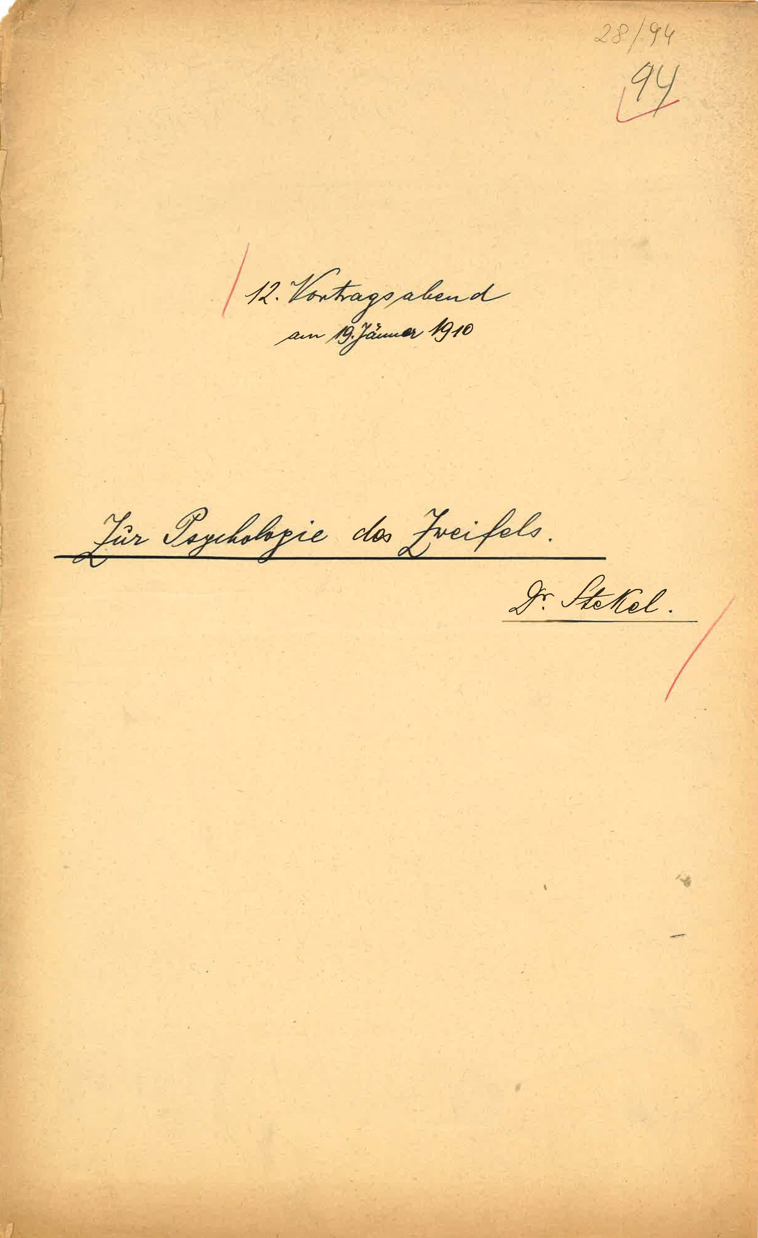 12. Vortragsabend: am 19. Januar 1910. Zur Psychologie des Zweifels. Dr. Stekel
