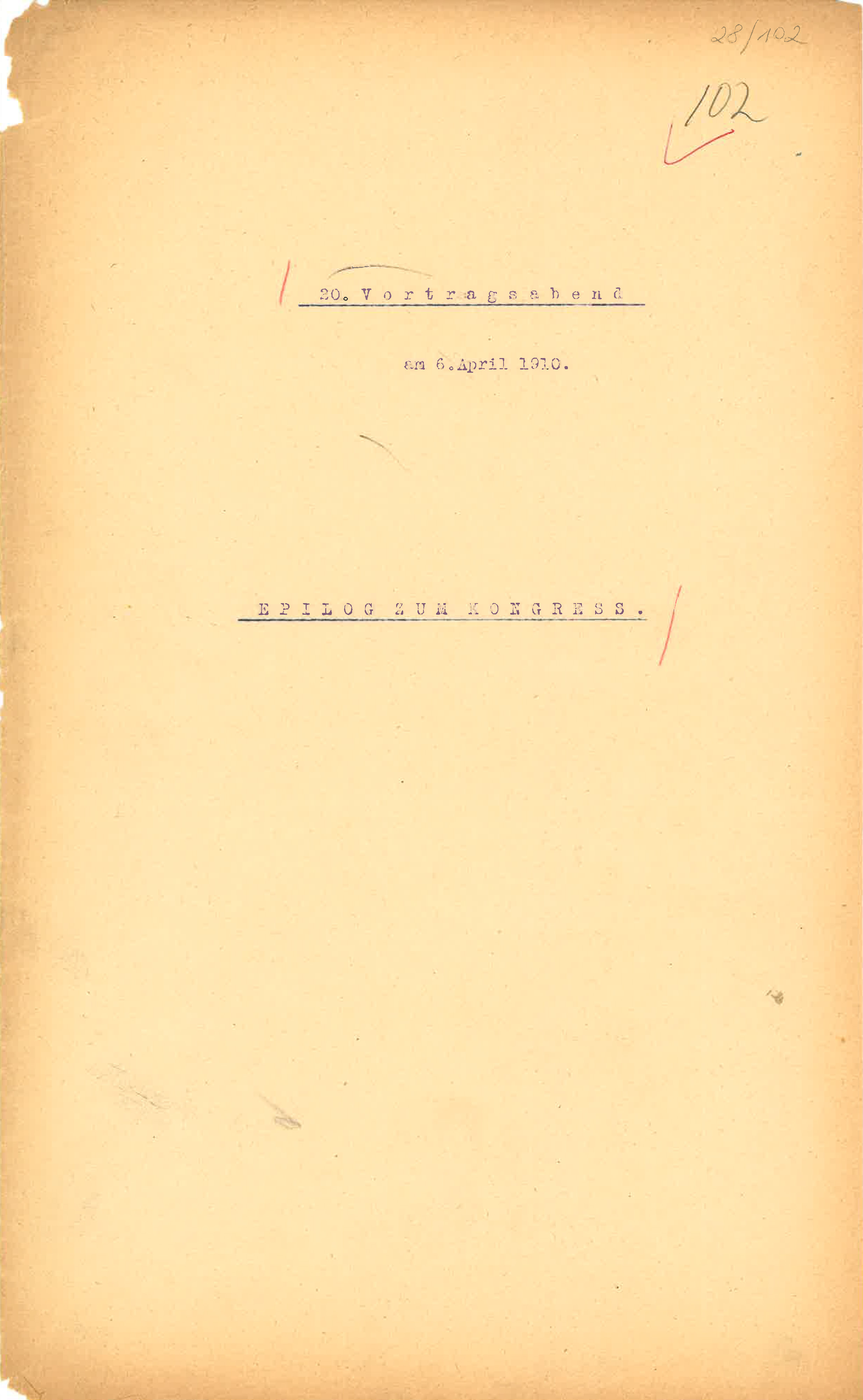 20. Vortragsabend am 6. April 1910. Epilog zum Kongreß