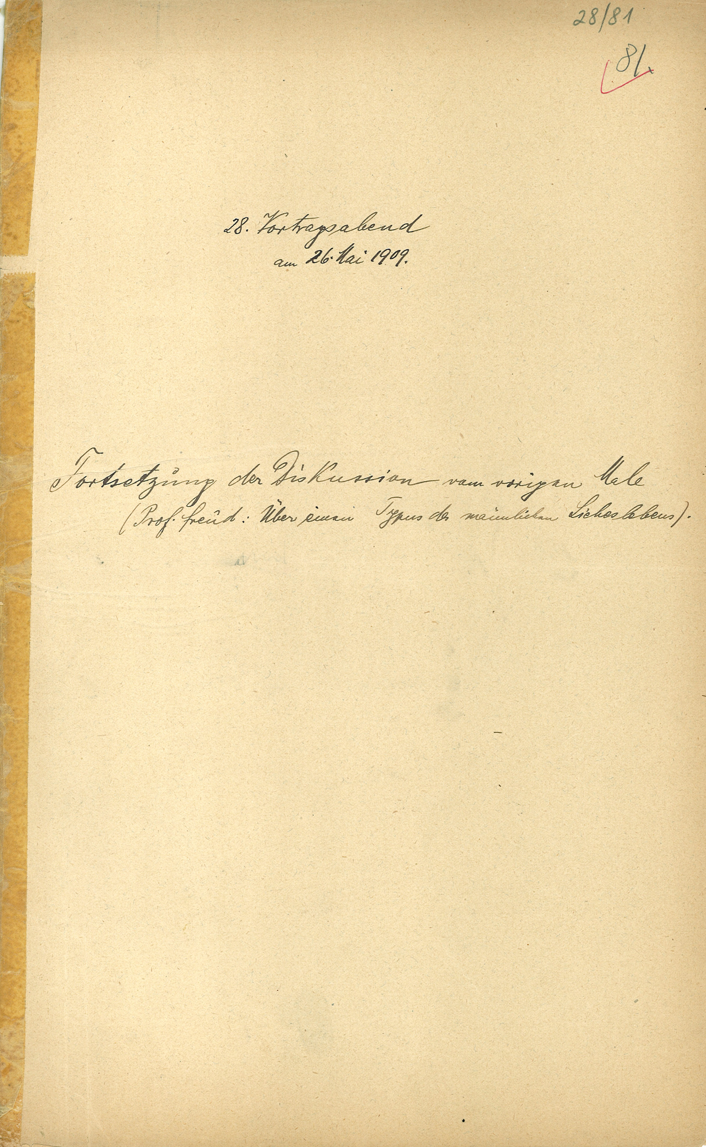 28. Vortragsabend am 26. Mai 1909. Fortsetzung der Diskussion vom vorigen Male (Prof. Freud: Über einen Typus des männlichen Liebeslebens)