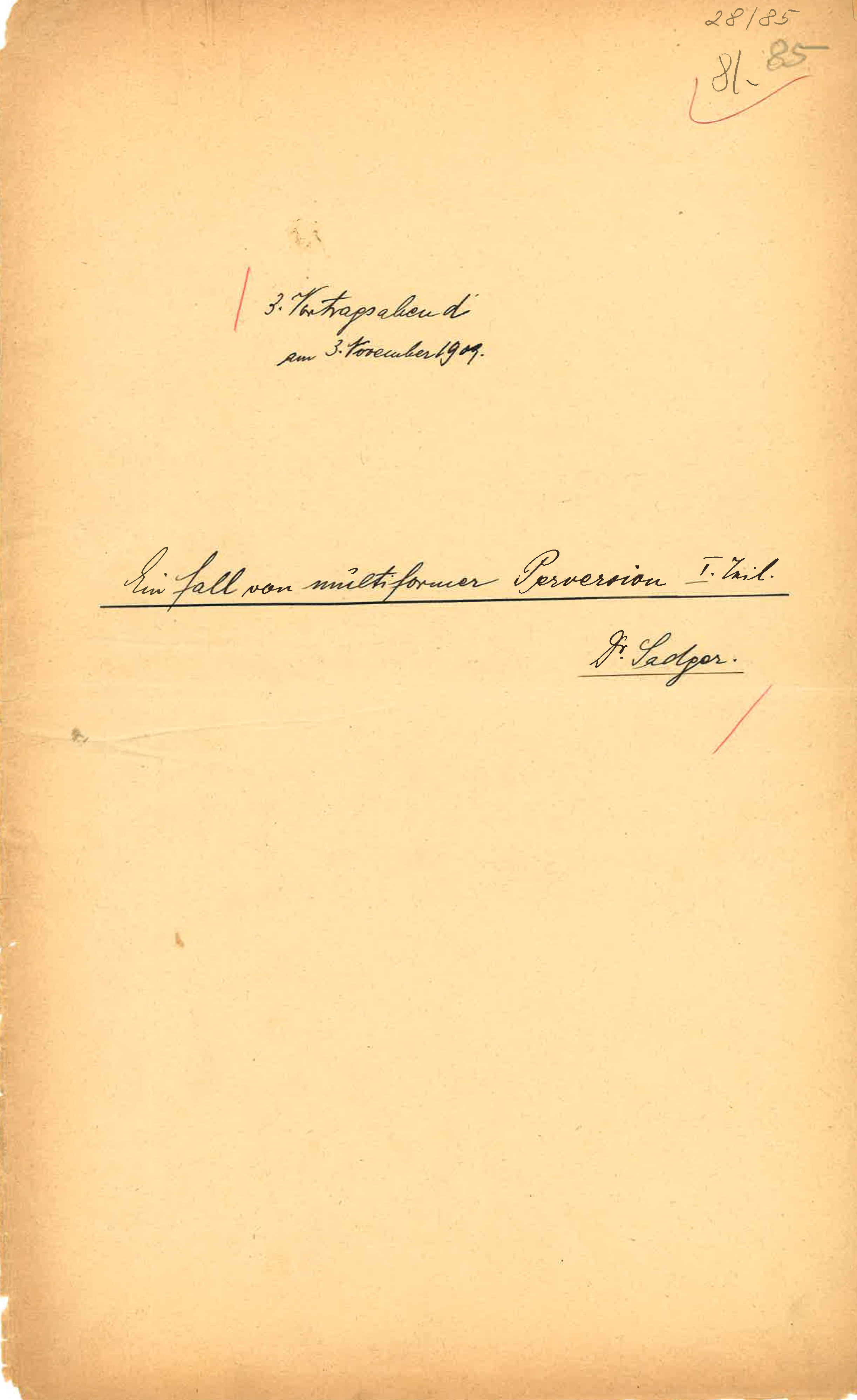 3. Vortragsabend: am 3. November 1909. Ein Fall von multiformer Perversion. I. Teil. Dr. Sadger 1909-524/1909