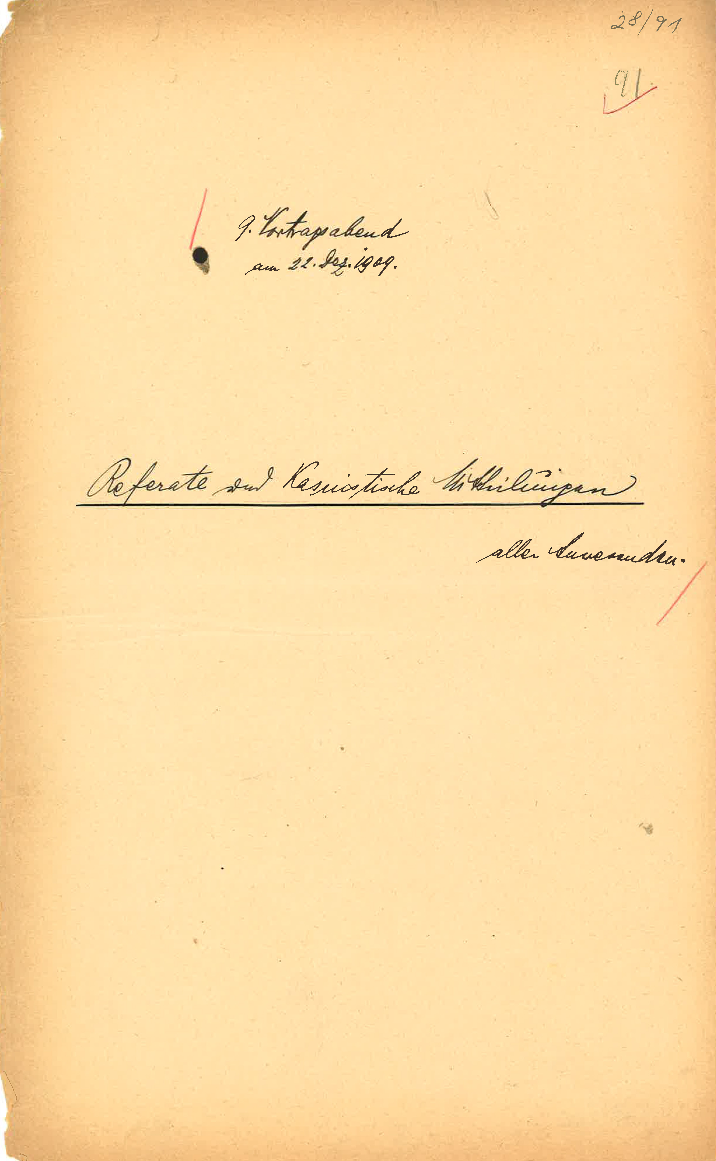 9. Vortragsabend: am 22. Dezember 1909. Referate und kasuistische Mitteilungen aller Anwesenden