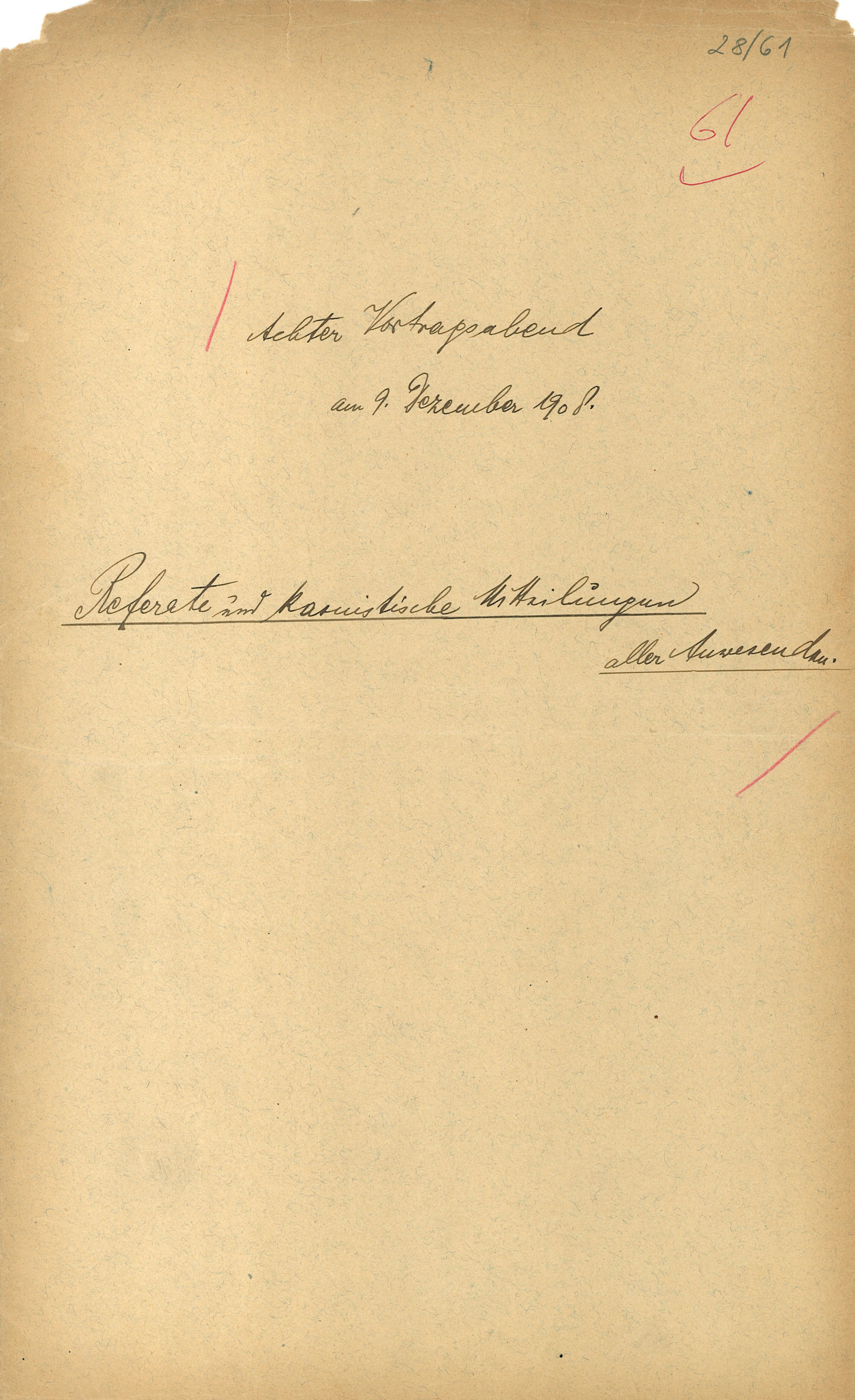 Achter Vortragsabend am 9. Dezember 1908. Referate und kasuistische Mitteilungen aller Anwesenden