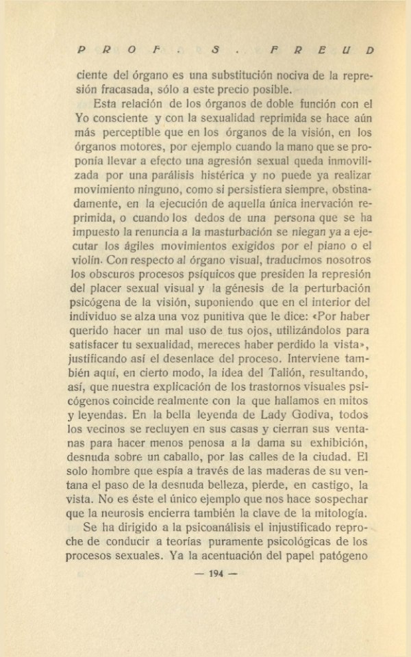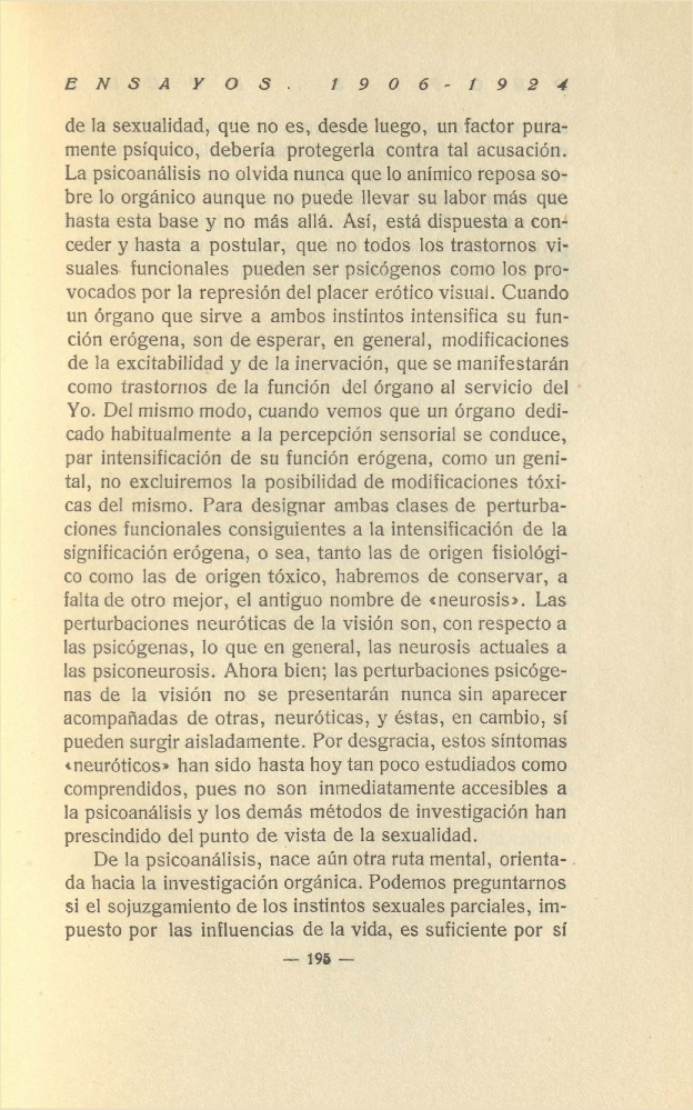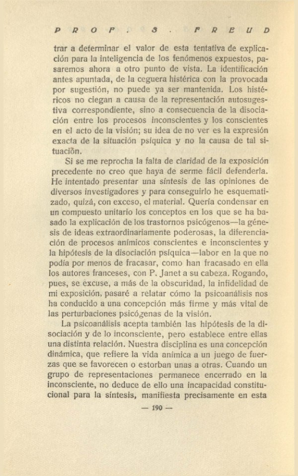 las perturbaciones psicógenas de la visión.La psicoanálisis acepta también las hipótesis de la di-