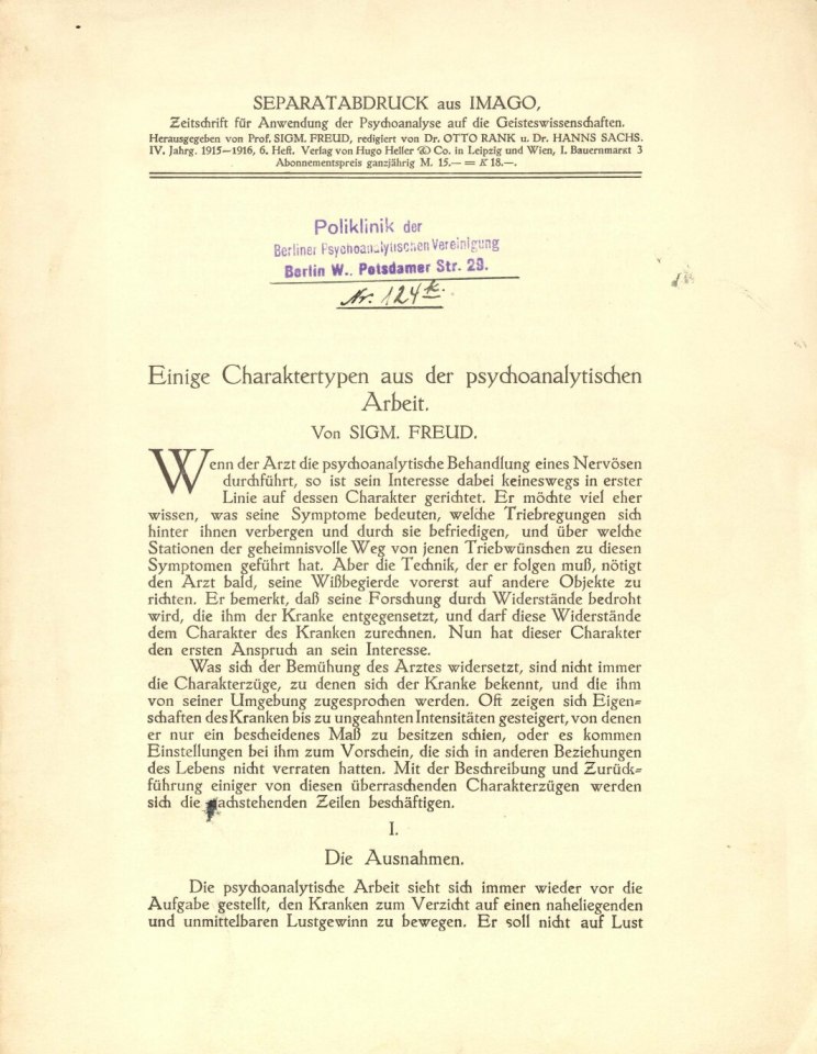 Freud, Sigmund | 1916-004/1916.01 | Einige Charaktertypen aus der psychoanalytischen Arbeit | [Archiv LoC] |