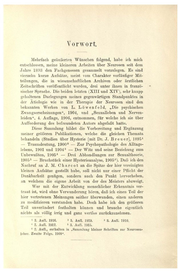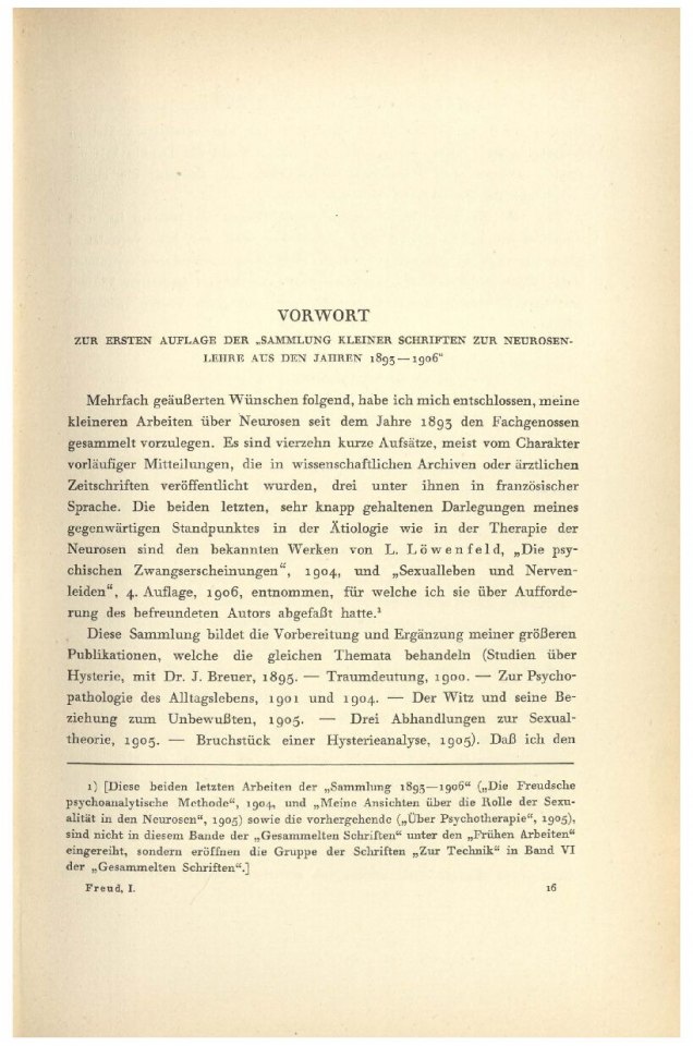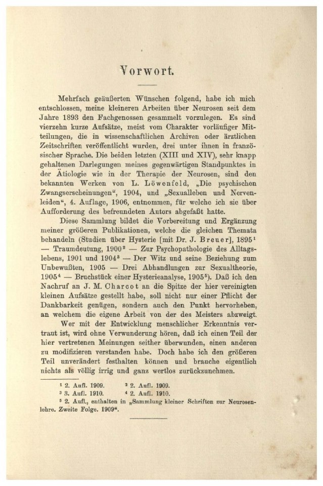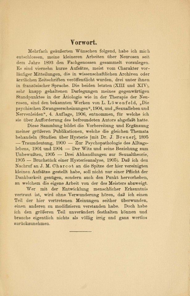 Vorwort [zu: ›Sammlung kleiner Schriften zur Neurosenlehre aus den Jahren 1893-1906, 1. Auflage‹