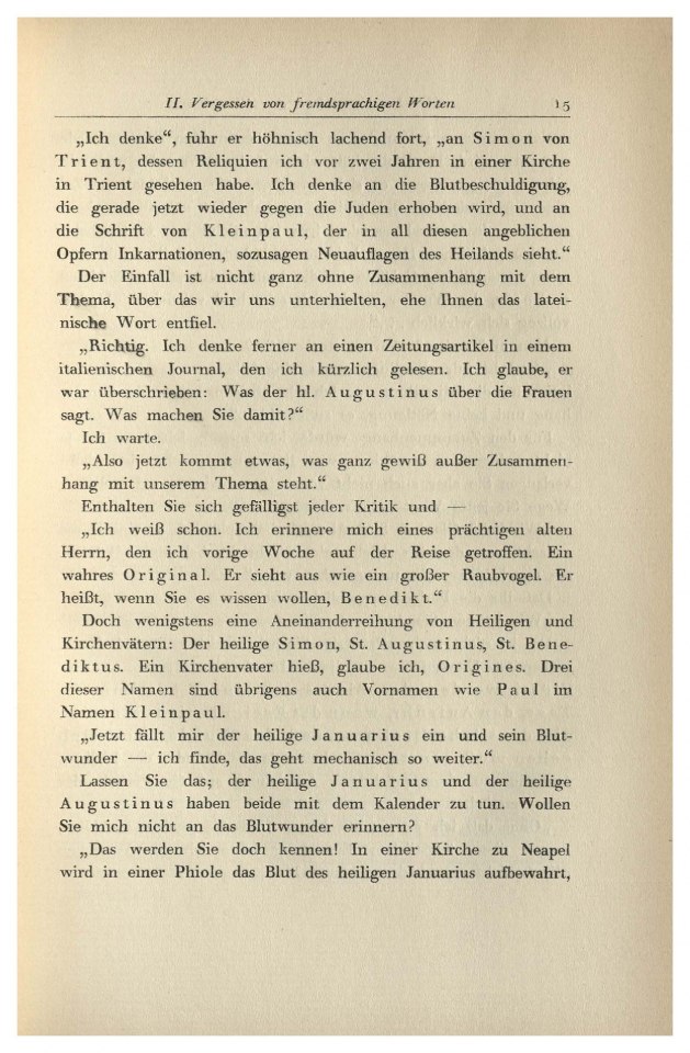 Wort zu erinnern, nicht irgend etwas zum Ersatz eingefallen sei, berichtete er, daß