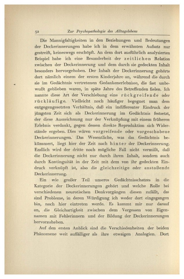 jüngsten Zeit sich als Deckerinnerung im Gedächtnis festsetzt,