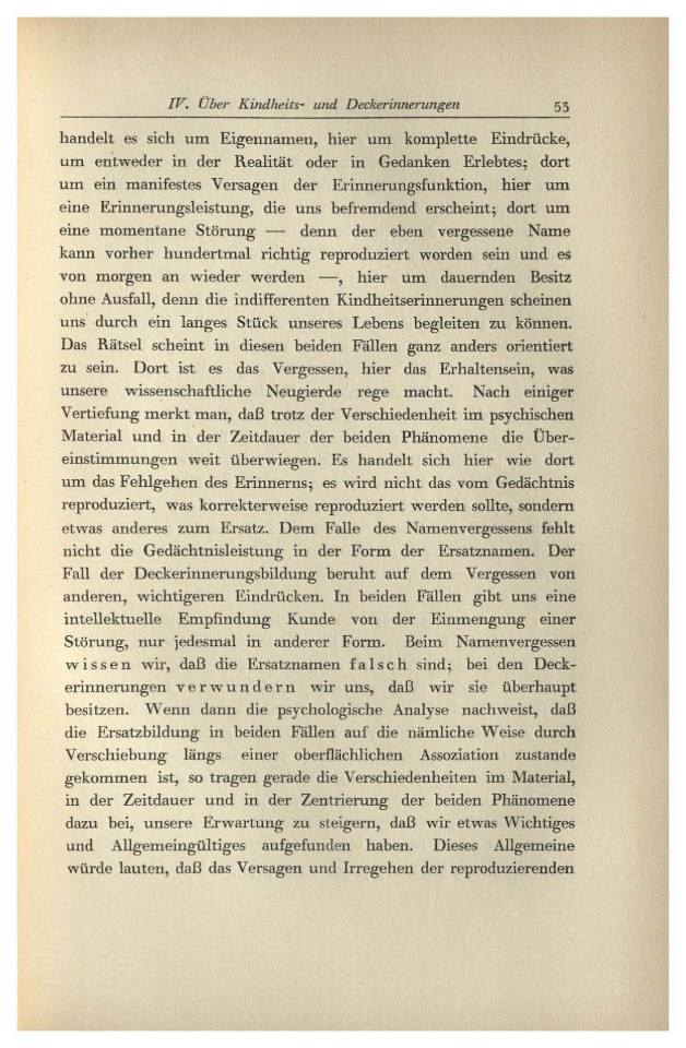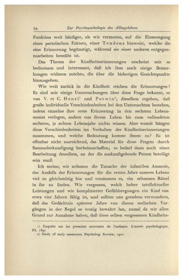 ohne Ausfall, denn die indifferenten Kindheitserinnerungen scheinen