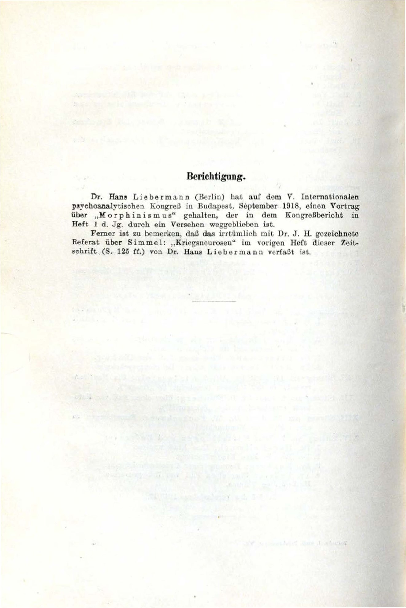 Referat über **Simmel**: „**Kriegsneurosen**“ im vorigen Heft dieser Zeit-