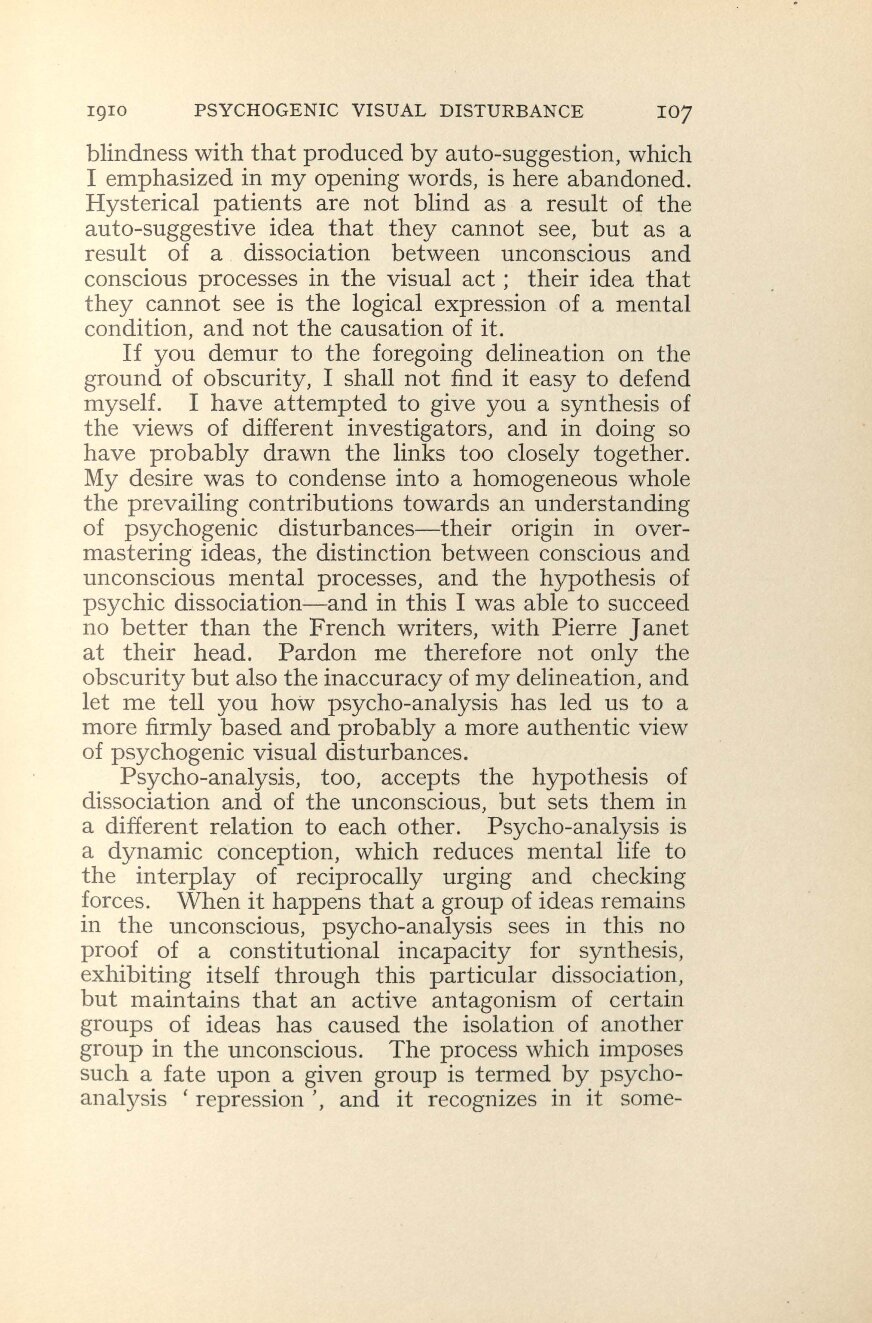 1910 PSYCHOGENIC VISUAL DISTURBANCE 107