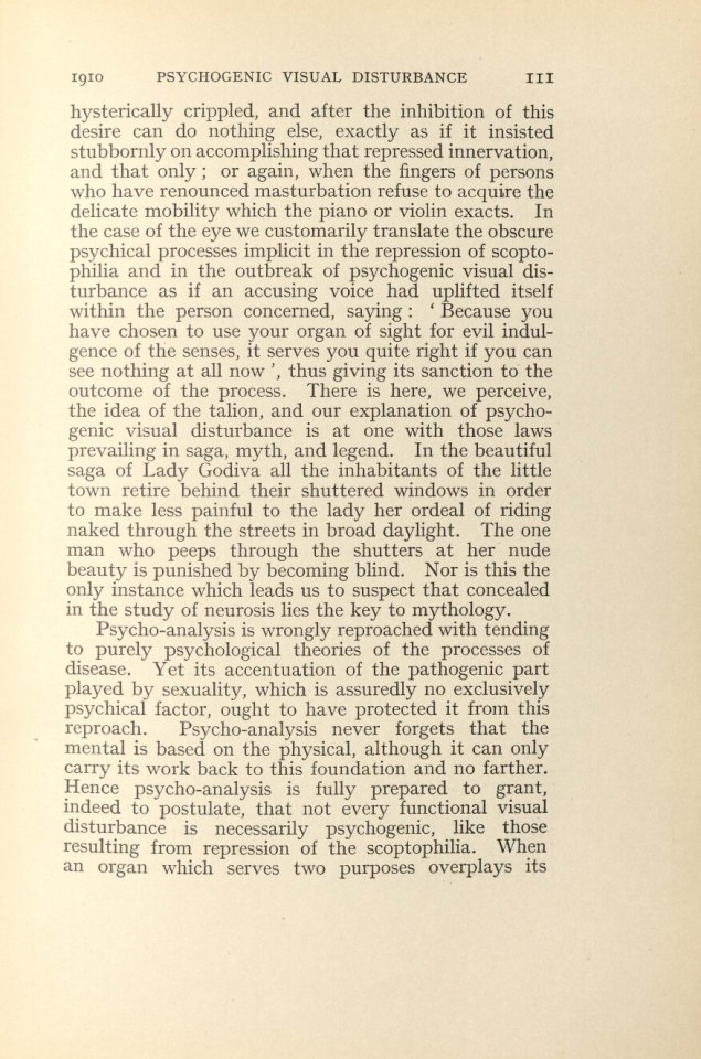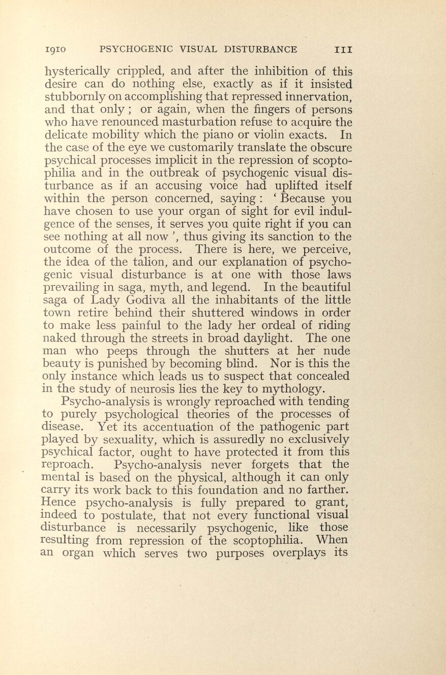 of psychogenie visual disturbances.Psycho-analysis, too, accepts the hypothesis of