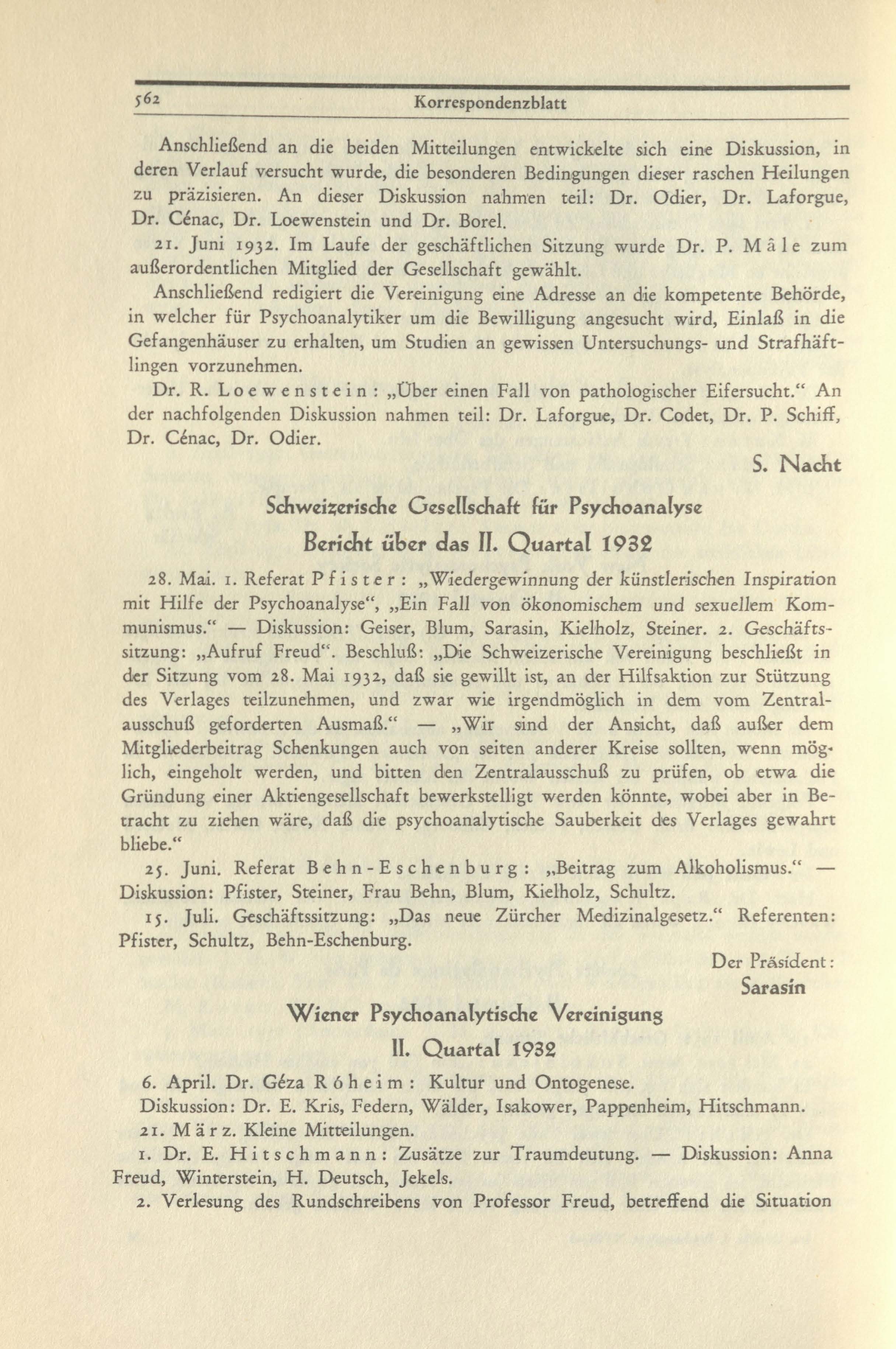 • Wiener Psychoanalytische Vereinigung. II. Quartal 1932