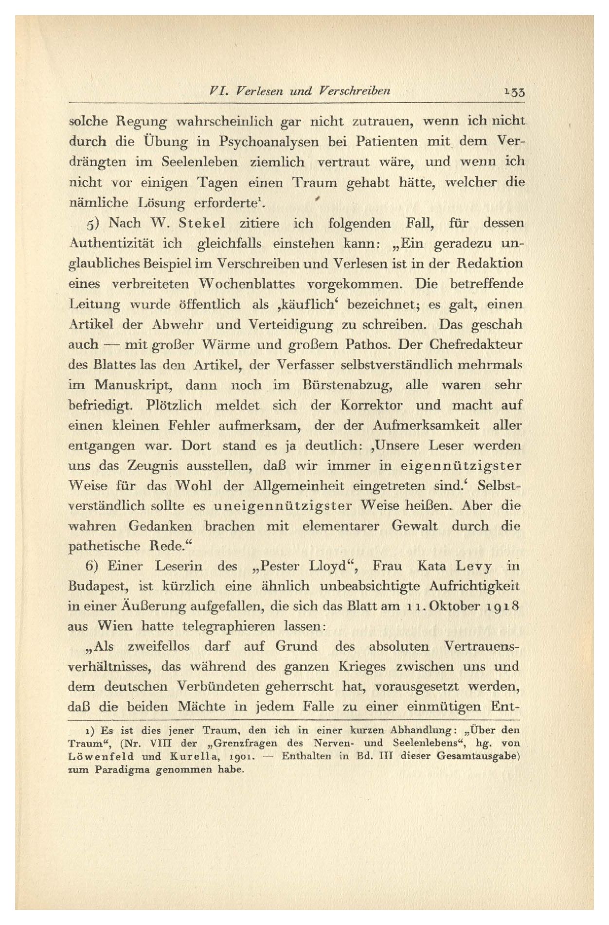 Kein Wunder, daß ich, der ich eben eine „Traumdeutung“