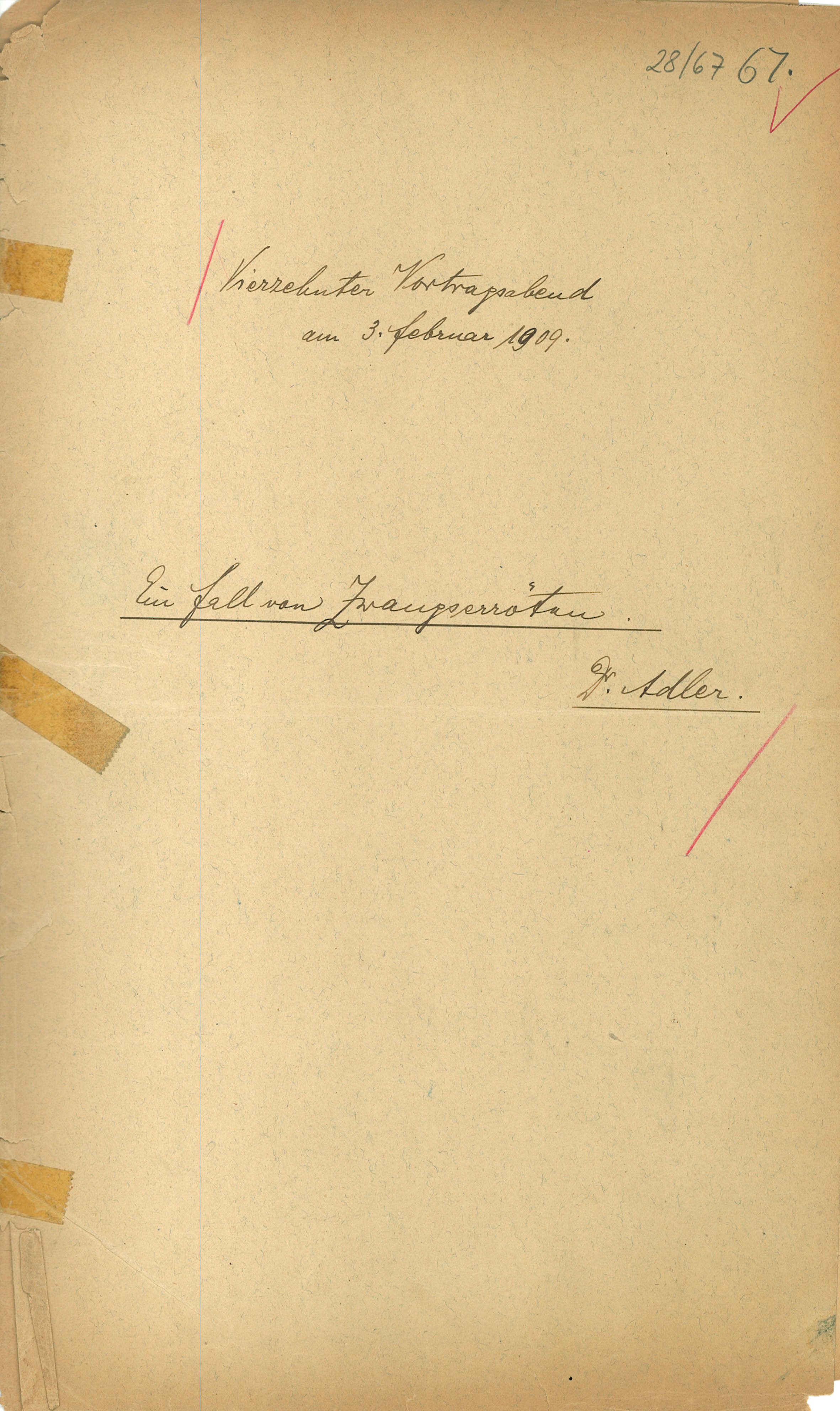 Vierzehnter Vortragsabend am 3.Februar 1909. Ein Fall von Zwangserröten. Dr. Adler