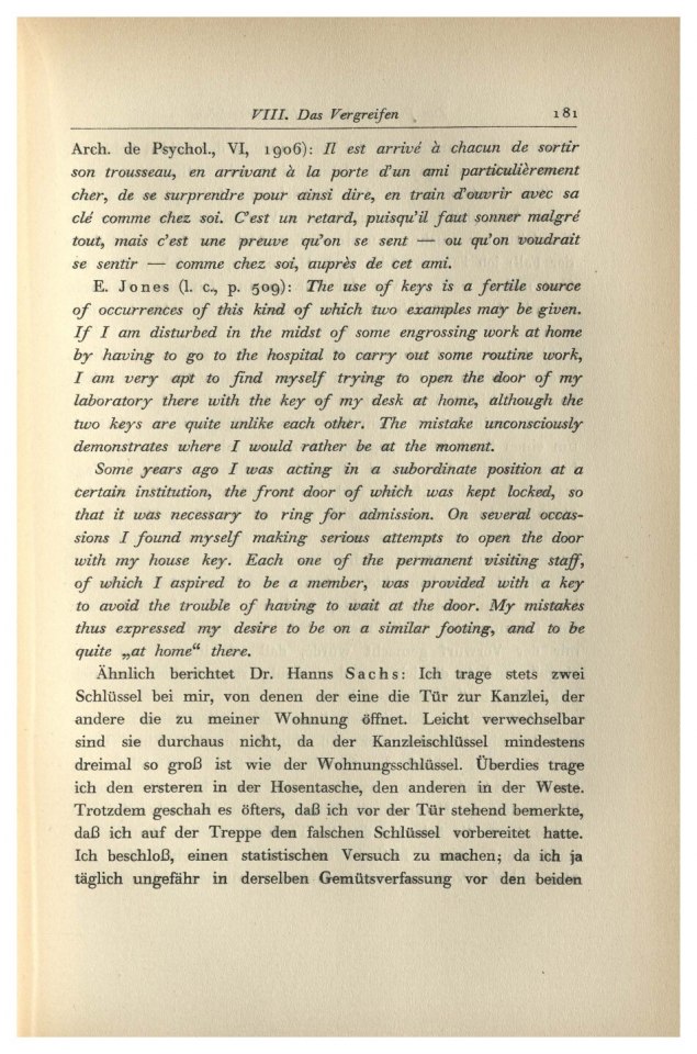 Ähnlich berichtet Dr. Hanns Sachs: Ich trage stets zwei