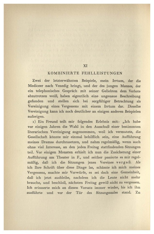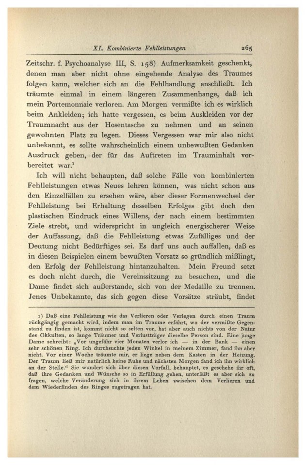 Jenes Unbekannte, das sich gegen diese Vorsätze sträubt, findet1) Daß eine Fehlleistung wie das Verlieren oder Verlegen durch einen Traum