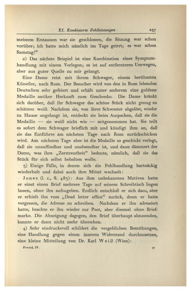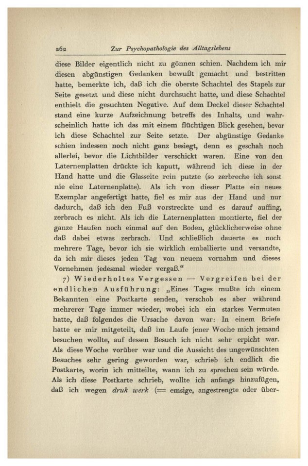 quent übersehen, als ich die Briefe holte, neben denen es lag.“5) Das Nämliche in einer eingehend analysierten Beobachtung