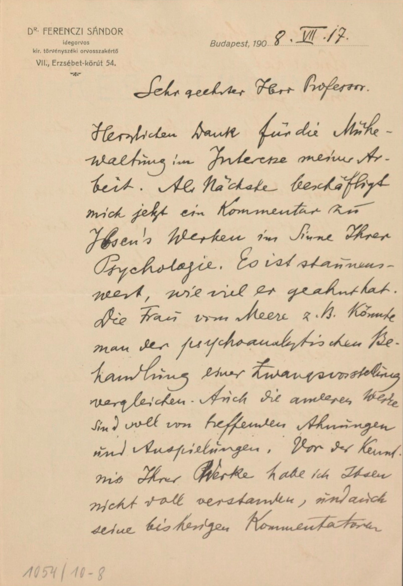 Freud, Sigmund, 1856-1939 [VerfasserIn] ; Ferenczi, Sándor, 1873-1933 [AdressatIn]
