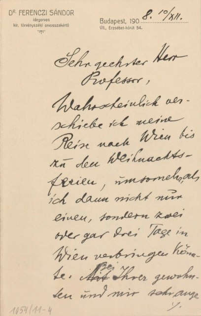 Freud, Sigmund, 1856-1939 [VerfasserIn] ; Ferenczi, Sándor, 1873-1933 [AdressatIn]