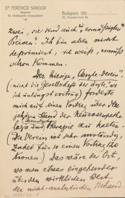 Freud, Sigmund, 1856-1939 [VerfasserIn] ; Ferenczi, Sándor, 1873-1933 [AdressatIn]