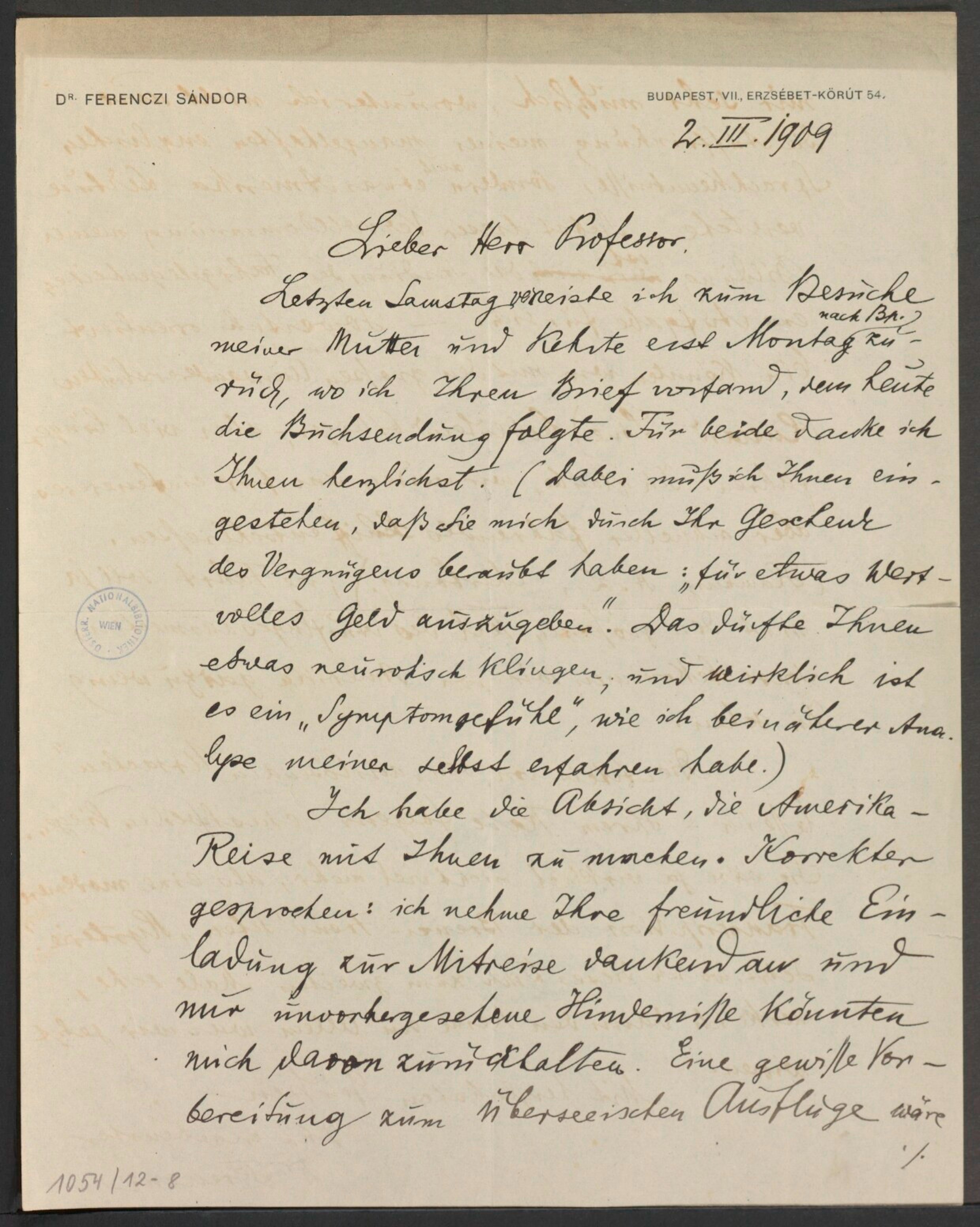Freud, Sigmund, 1856-1939 [VerfasserIn] ; Ferenczi, Sándor, 1873-1933 [AdressatIn]