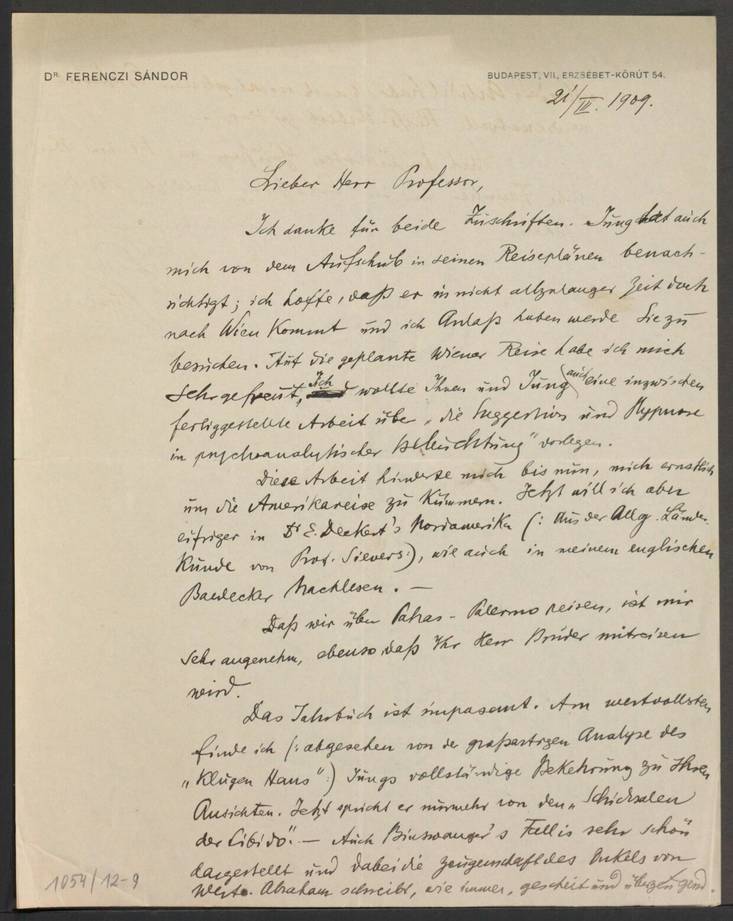 Freud, Sigmund, 1856-1939 [VerfasserIn] ; Ferenczi, Sándor, 1873-1933 [AdressatIn]