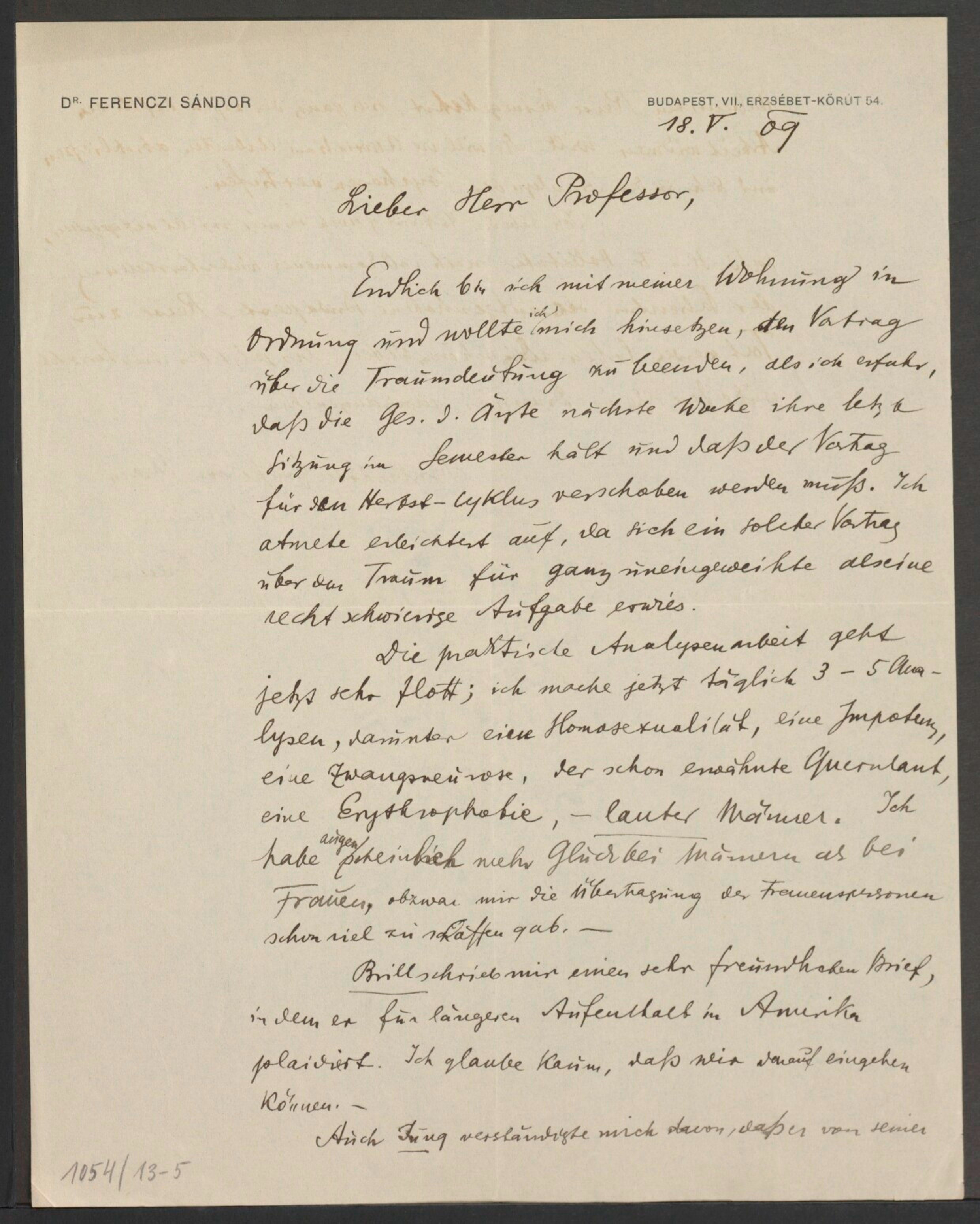 Freud, Sigmund, 1856-1939 [VerfasserIn] ; Ferenczi, Sándor, 1873-1933 [AdressatIn]