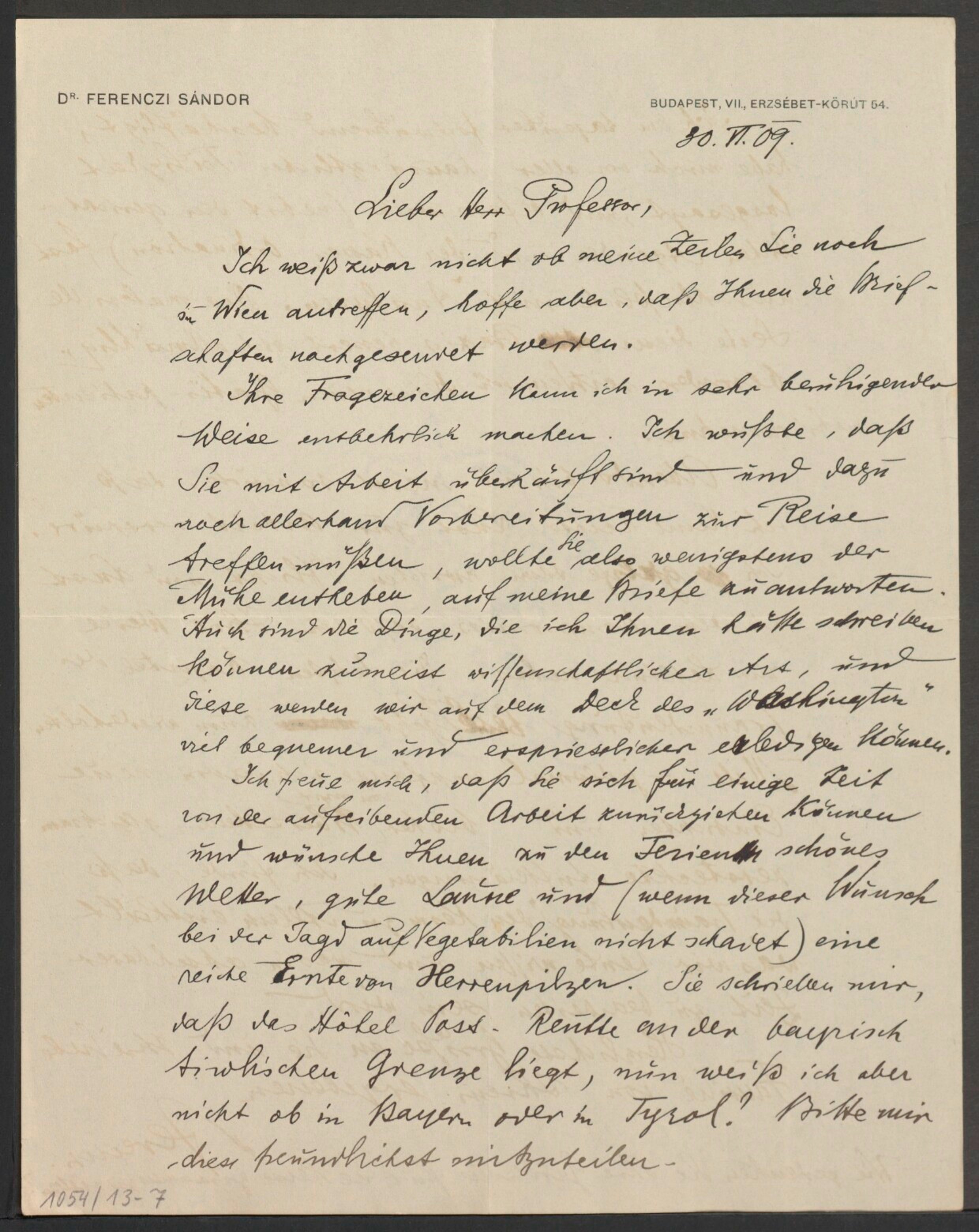 Freud, Sigmund, 1856-1939 [VerfasserIn] ; Ferenczi, Sándor, 1873-1933 [AdressatIn]