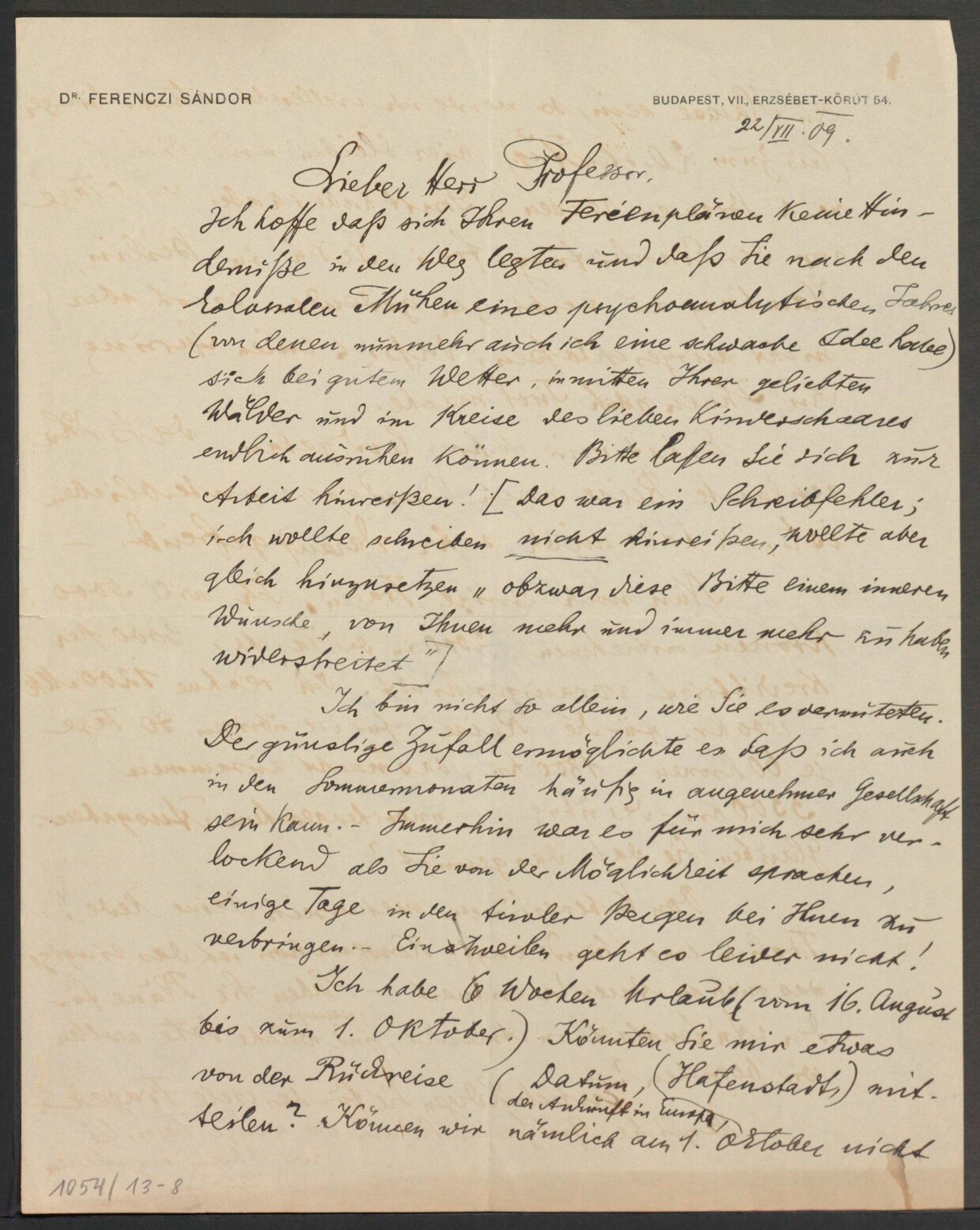 Freud, Sigmund, 1856-1939 [VerfasserIn] ; Ferenczi, Sándor, 1873-1933 [AdressatIn]