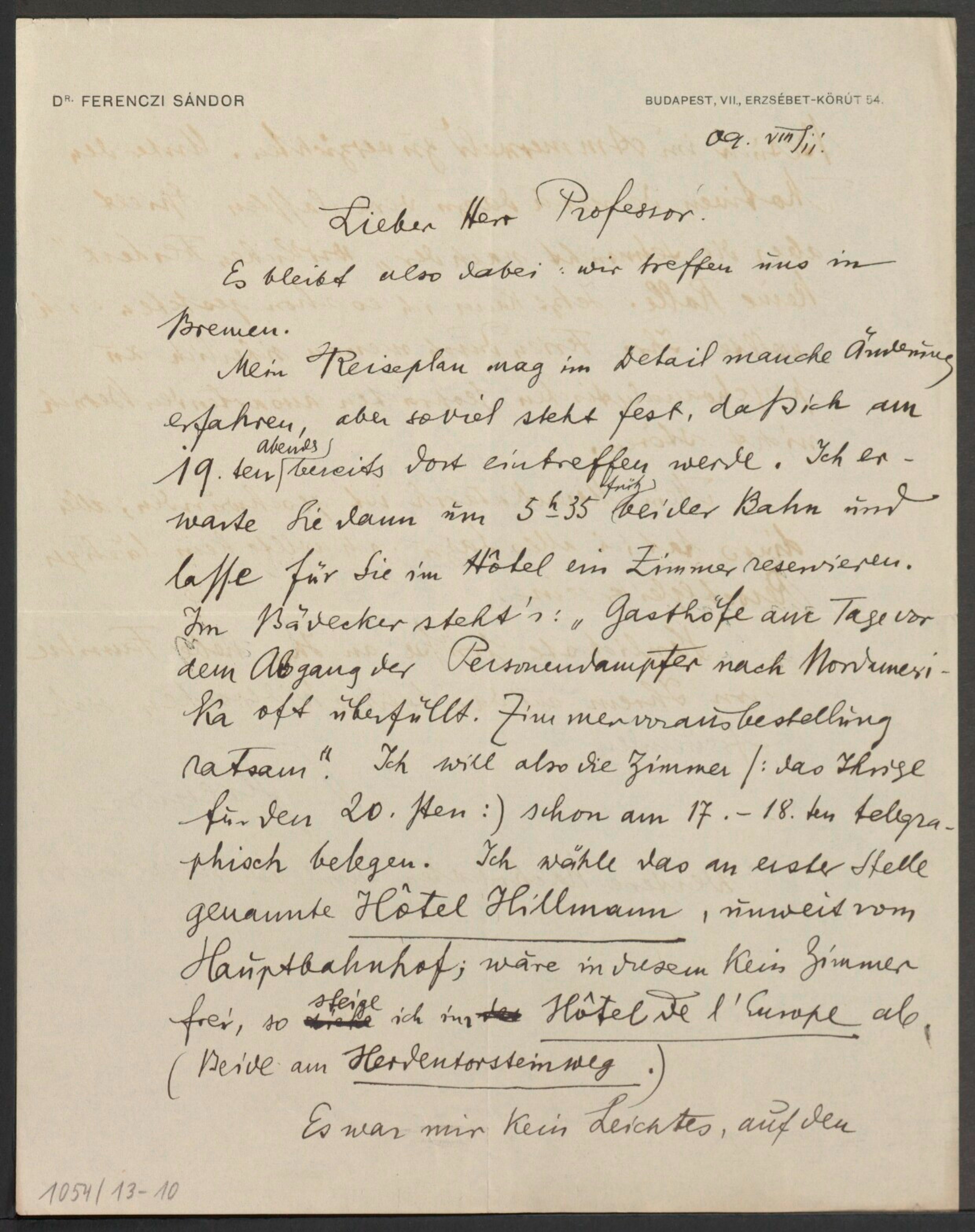 Freud, Sigmund, 1856-1939 [VerfasserIn] ; Ferenczi, Sándor, 1873-1933 [AdressatIn]