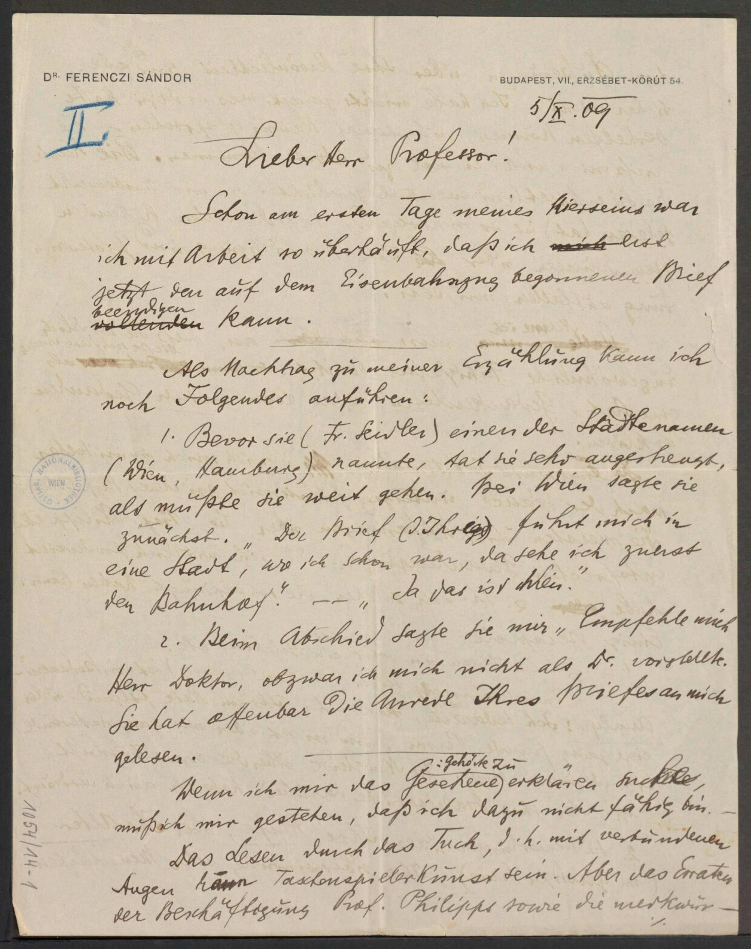 Freud, Sigmund, 1856-1939 [VerfasserIn] ; Ferenczi, Sándor, 1873-1933 [AdressatIn]