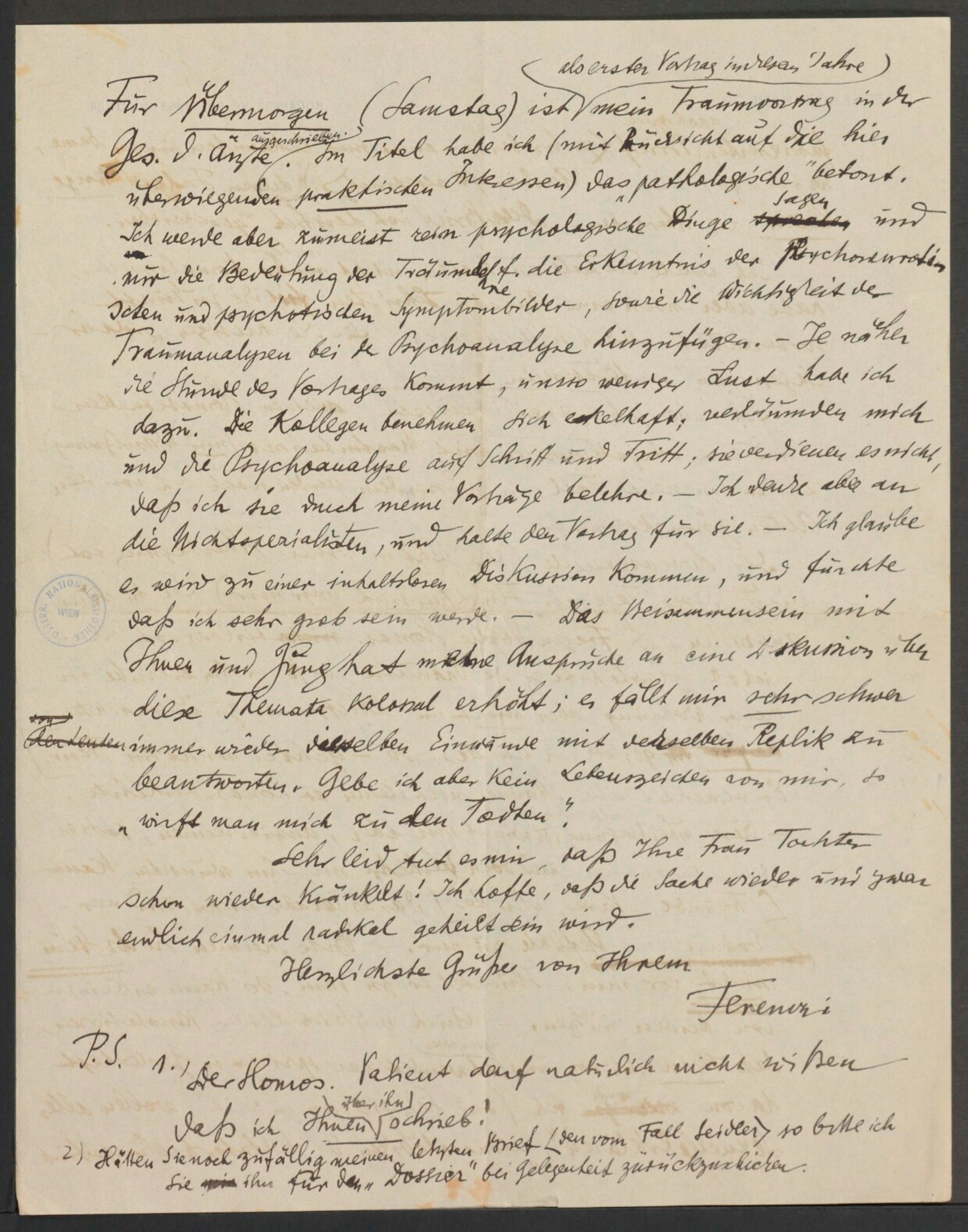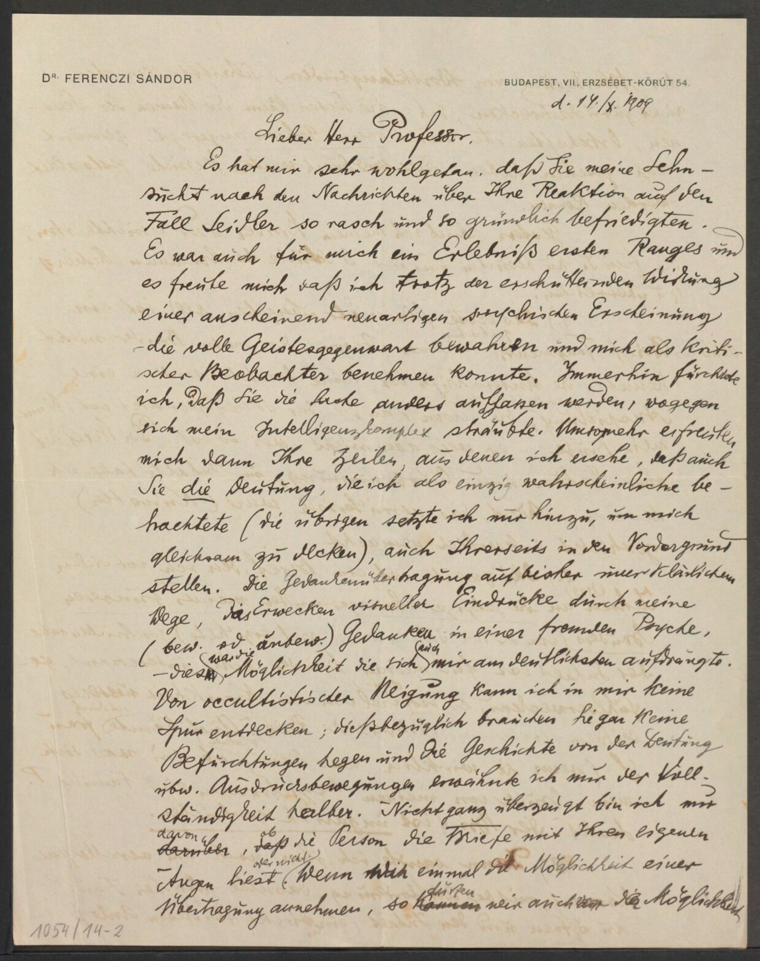 Freud, Sigmund, 1856-1939 [VerfasserIn] ; Ferenczi, Sándor, 1873-1933 [AdressatIn]