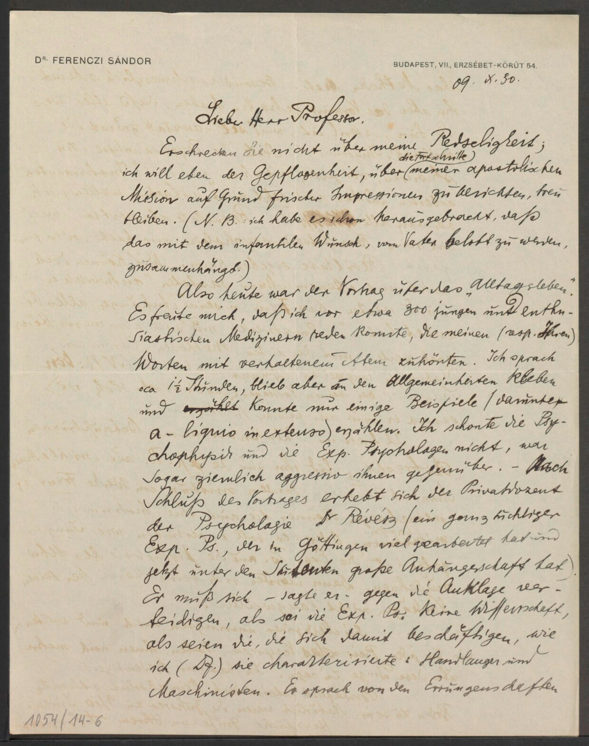 Freud, Sigmund, 1856-1939 [VerfasserIn] ; Ferenczi, Sándor, 1873-1933 [AdressatIn]