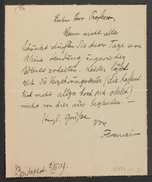 Freud, Sigmund, 1856-1939 [VerfasserIn] ; Ferenczi, Sándor, 1873-1933 [AdressatIn]