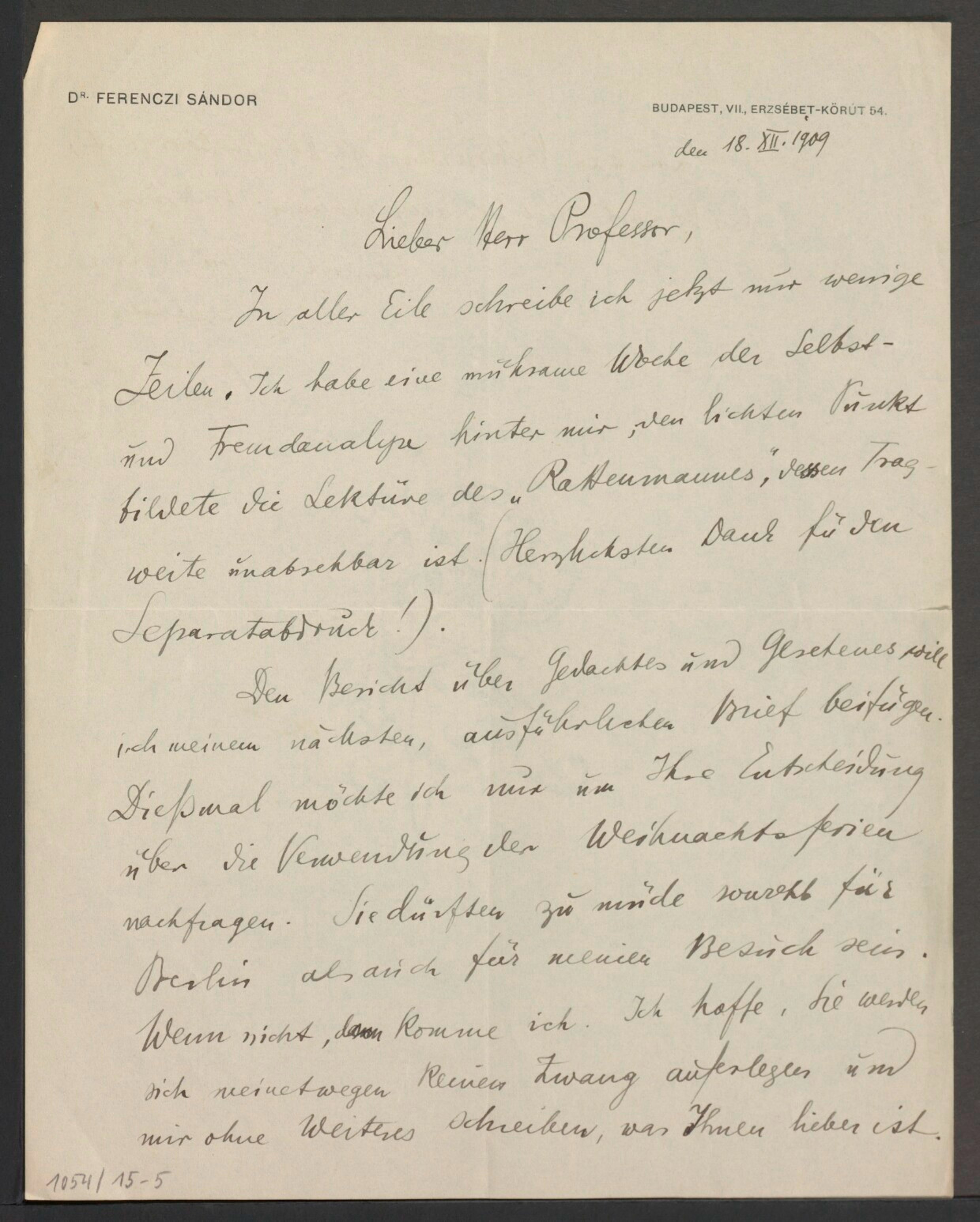 Freud, Sigmund, 1856-1939 [VerfasserIn] ; Ferenczi, Sándor, 1873-1933 [AdressatIn]