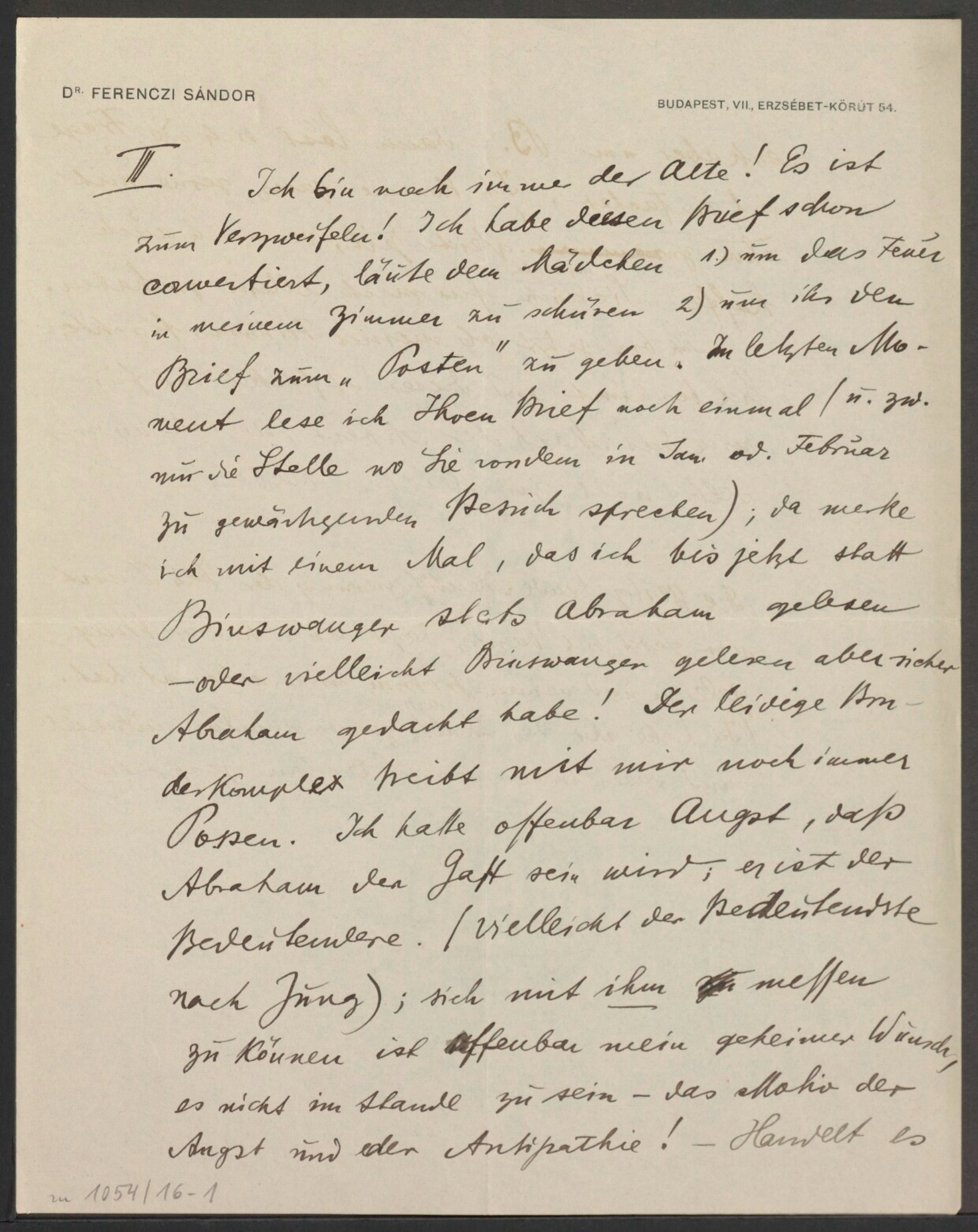 Freud, Sigmund, 1856-1939 [VerfasserIn] ; Ferenczi, Sándor, 1873-1933 [AdressatIn]