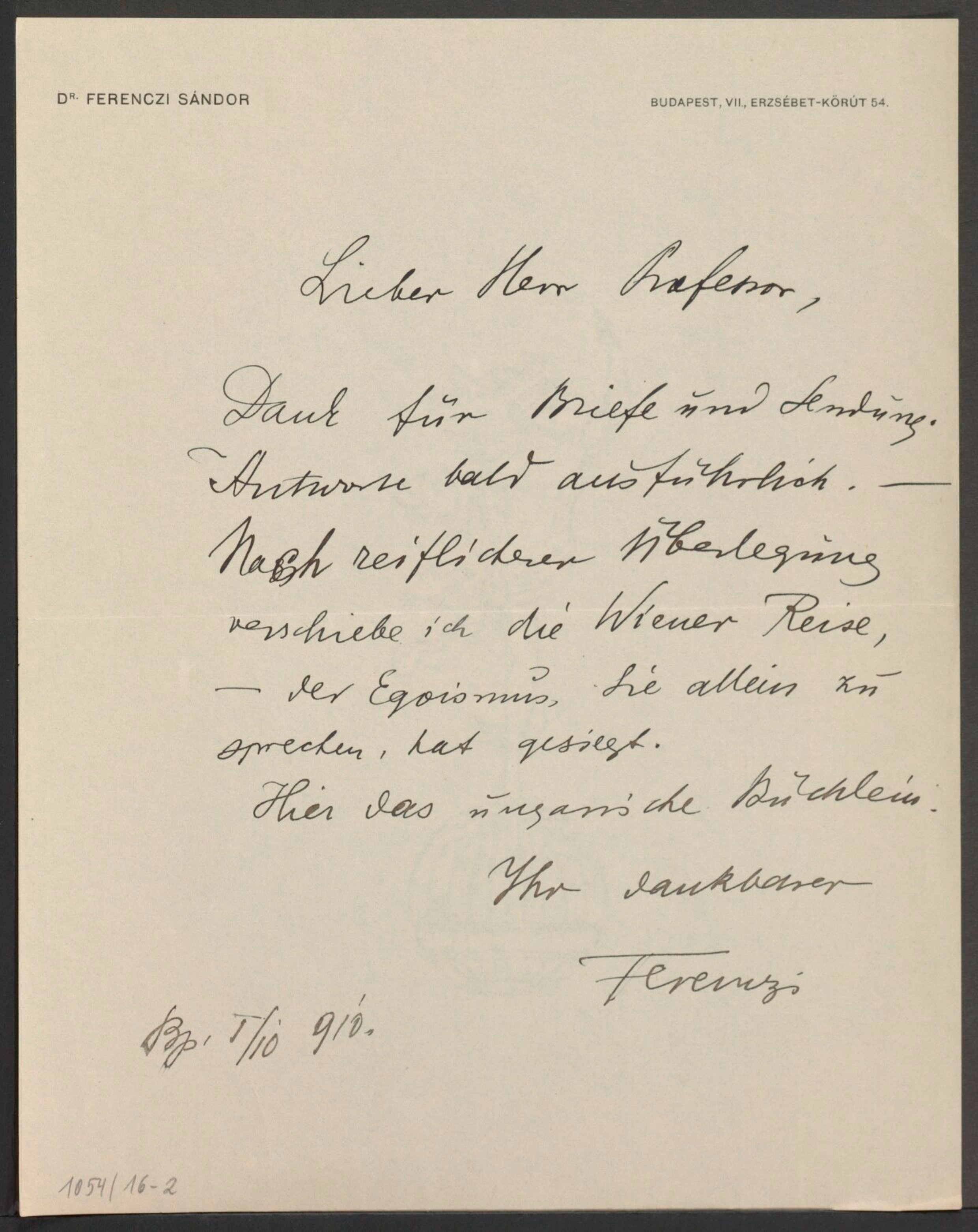 Freud, Sigmund, 1856-1939 [VerfasserIn] ; Ferenczi, Sándor, 1873-1933 [AdressatIn]