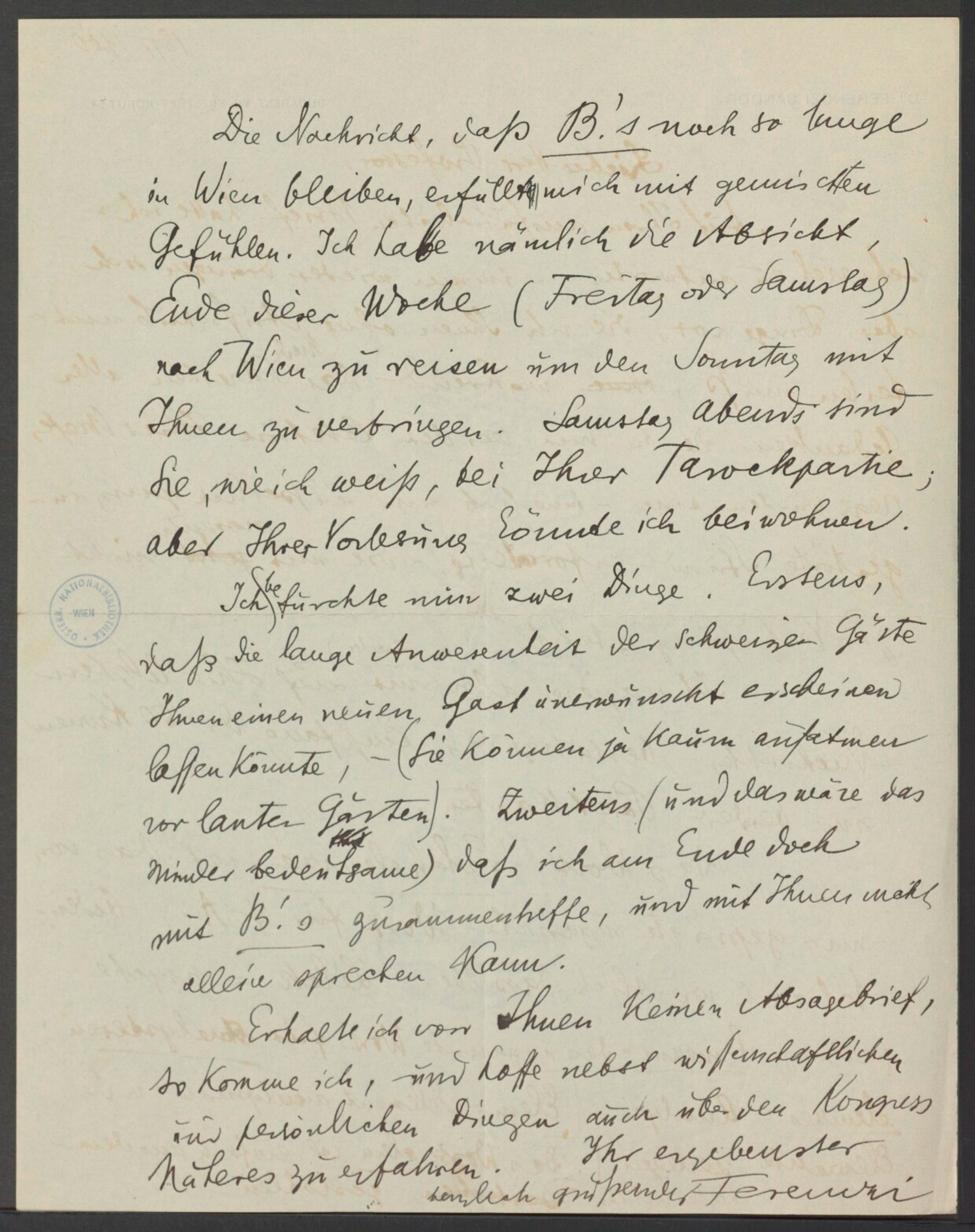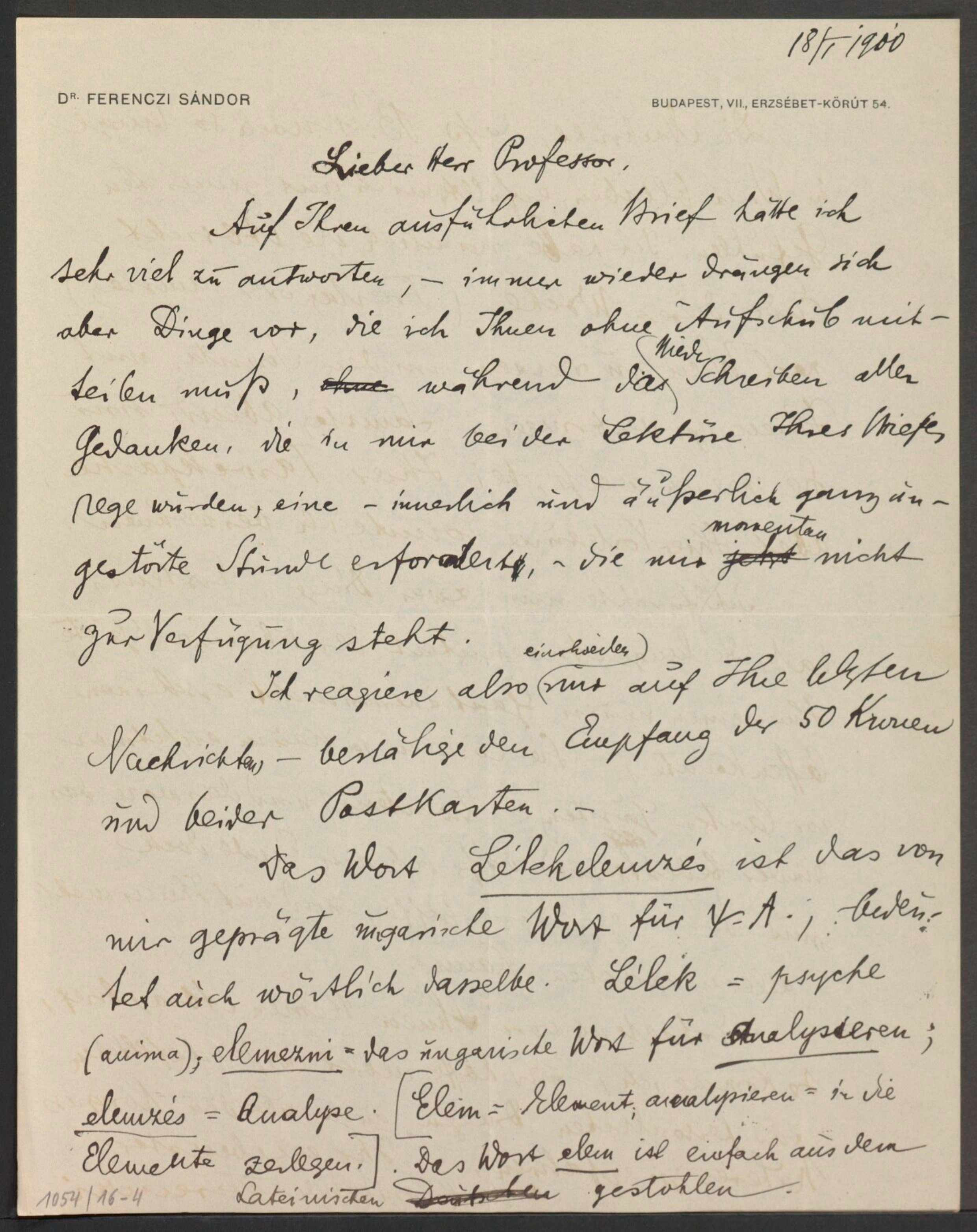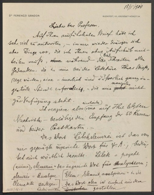 Freud, Sigmund, 1856-1939 [VerfasserIn] ; Ferenczi, Sándor, 1873-1933 [AdressatIn]