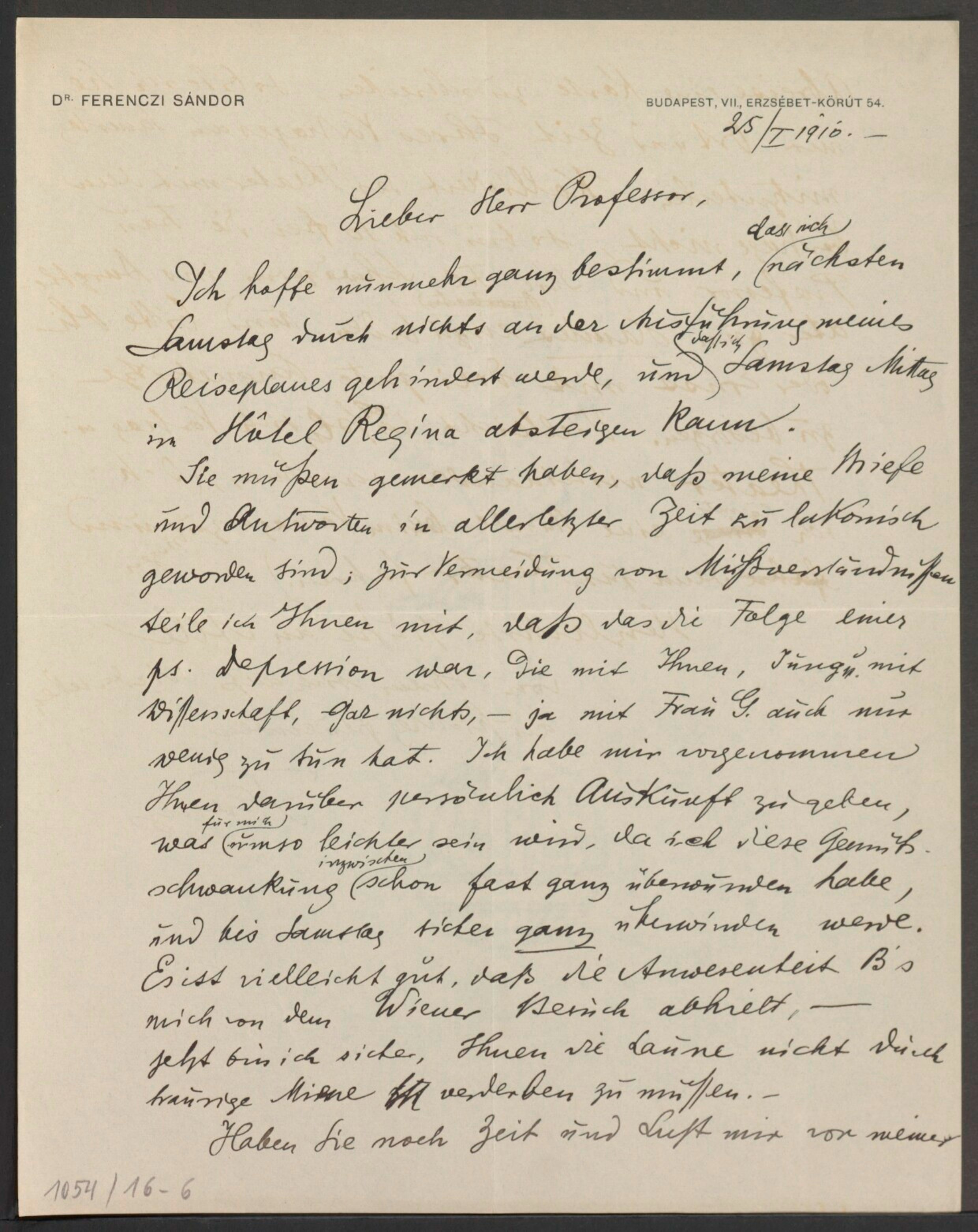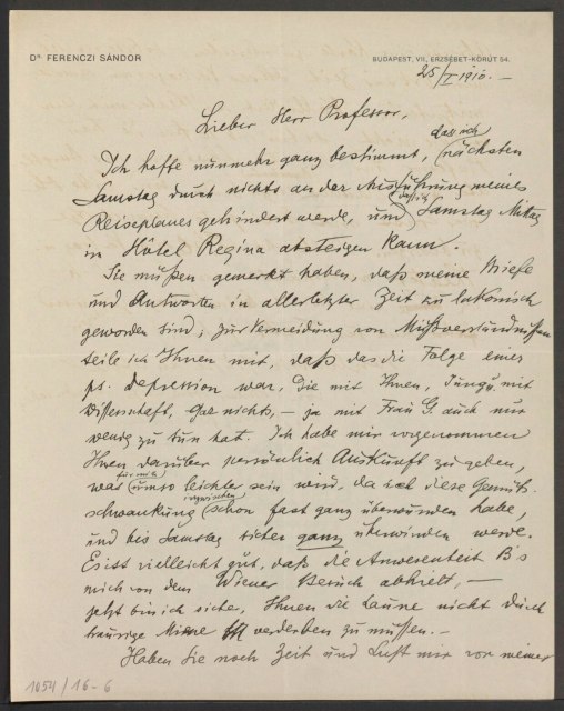 Freud, Sigmund, 1856-1939 [VerfasserIn] ; Ferenczi, Sándor, 1873-1933 [AdressatIn]