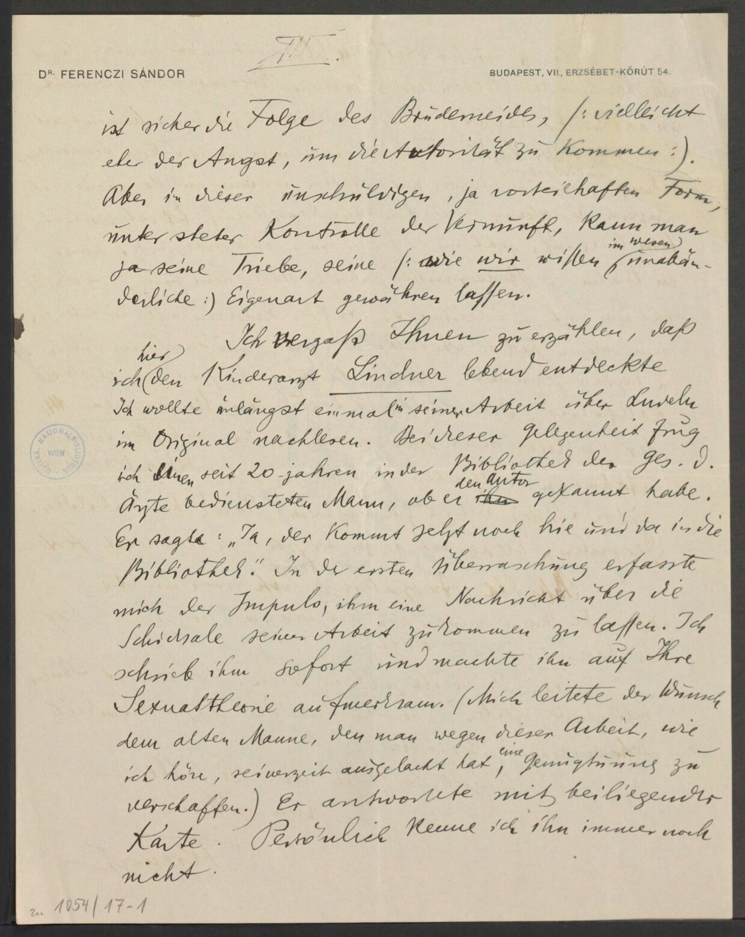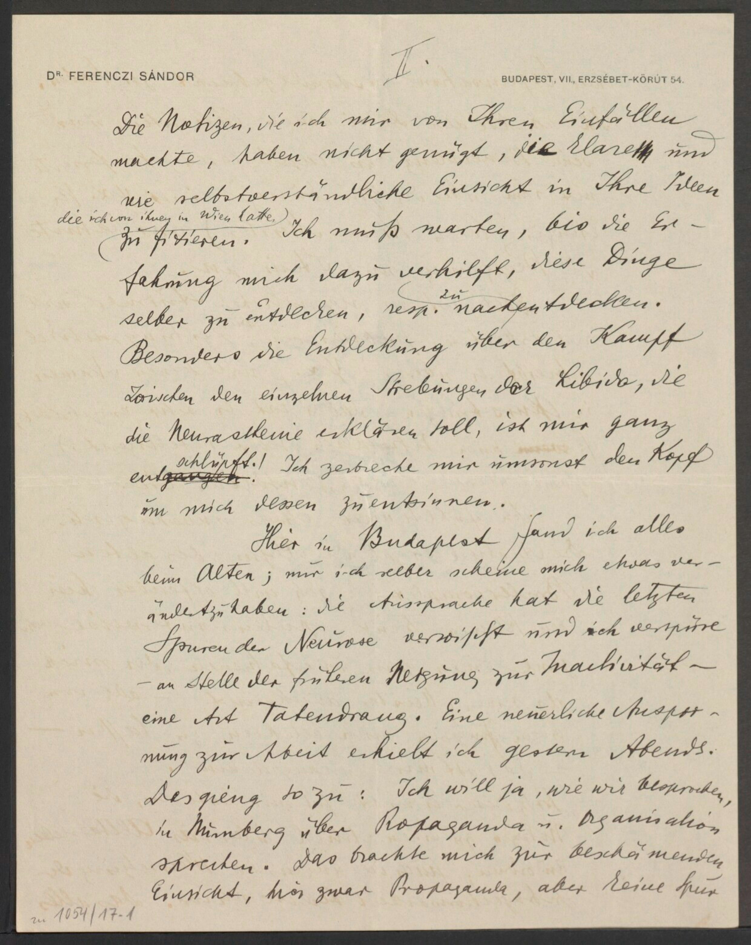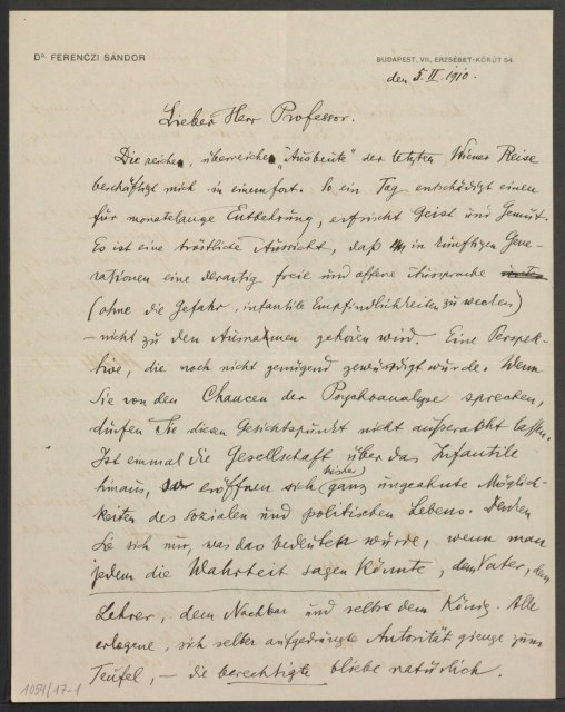 Freud, Sigmund, 1856-1939 [VerfasserIn] ; Ferenczi, Sándor, 1873-1933 [AdressatIn]