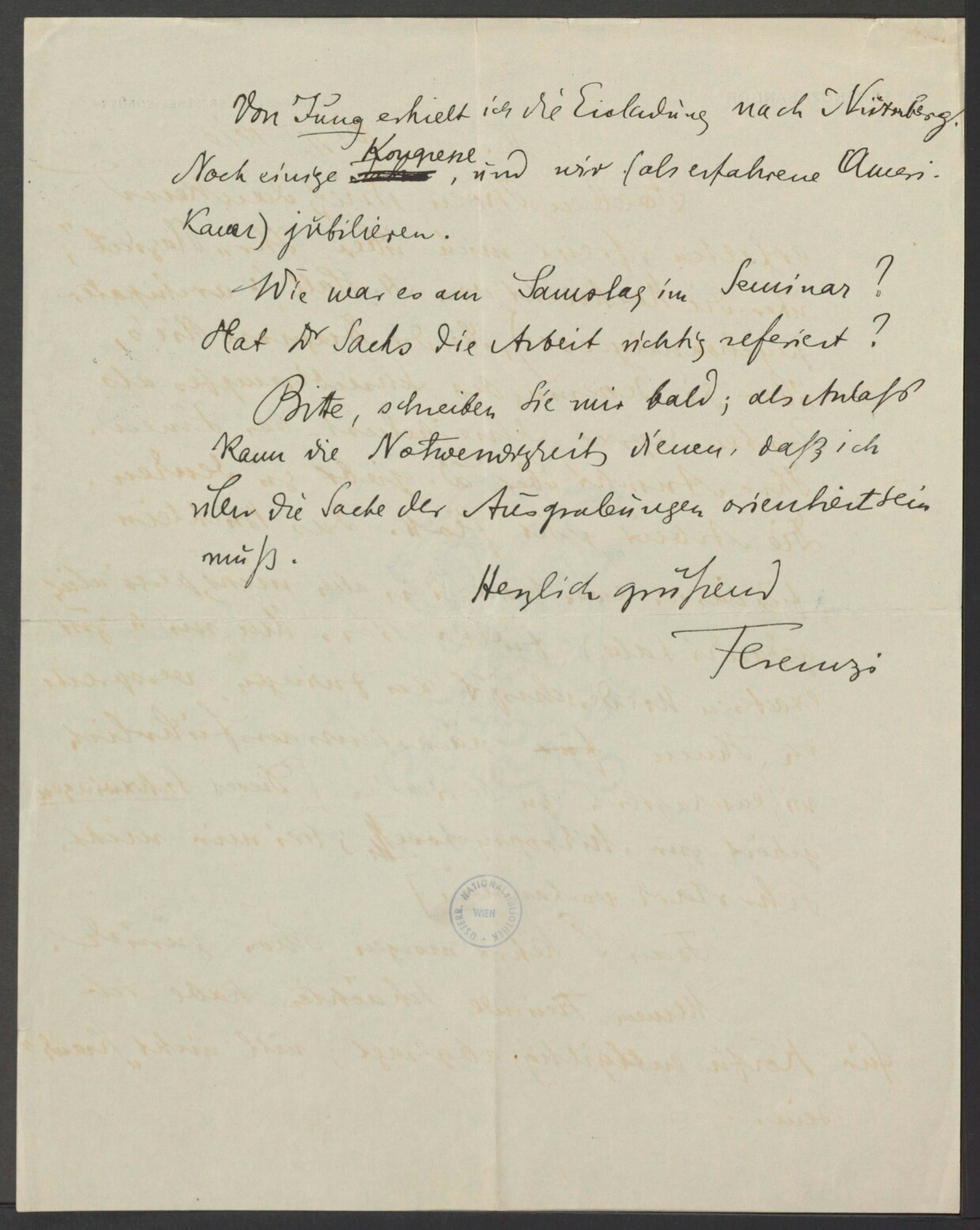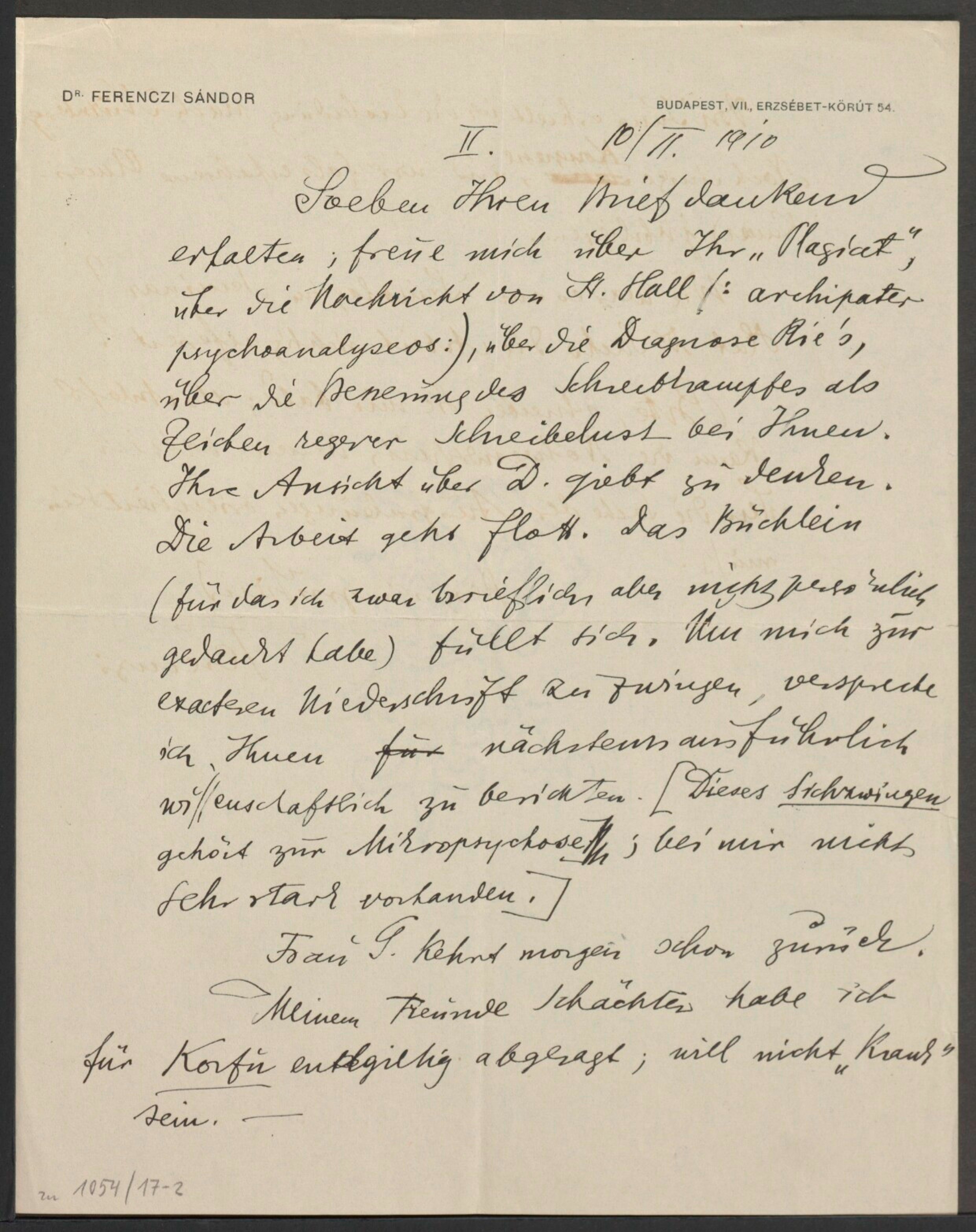 Freud, Sigmund, 1856-1939 [VerfasserIn] ; Ferenczi, Sándor, 1873-1933 [AdressatIn]