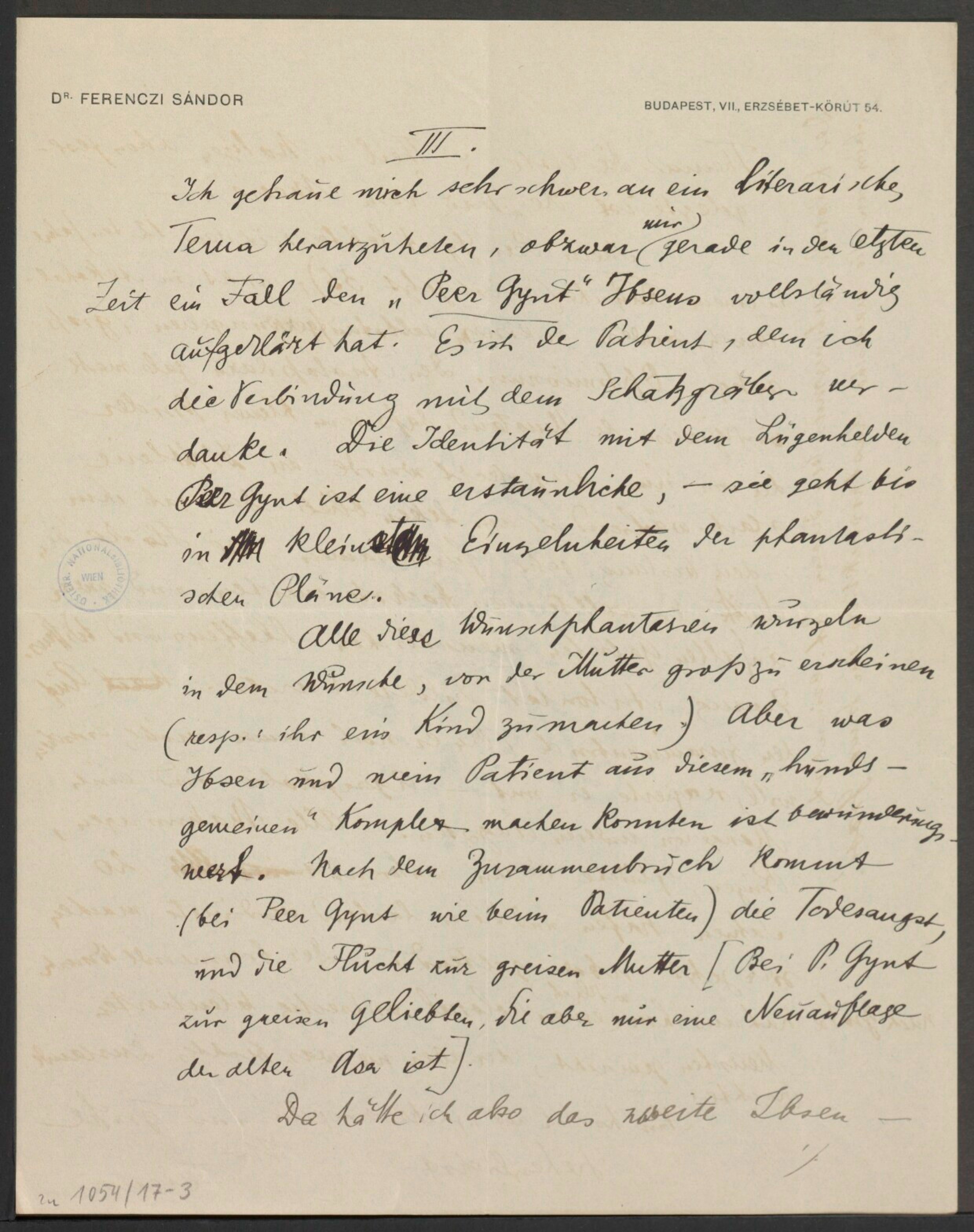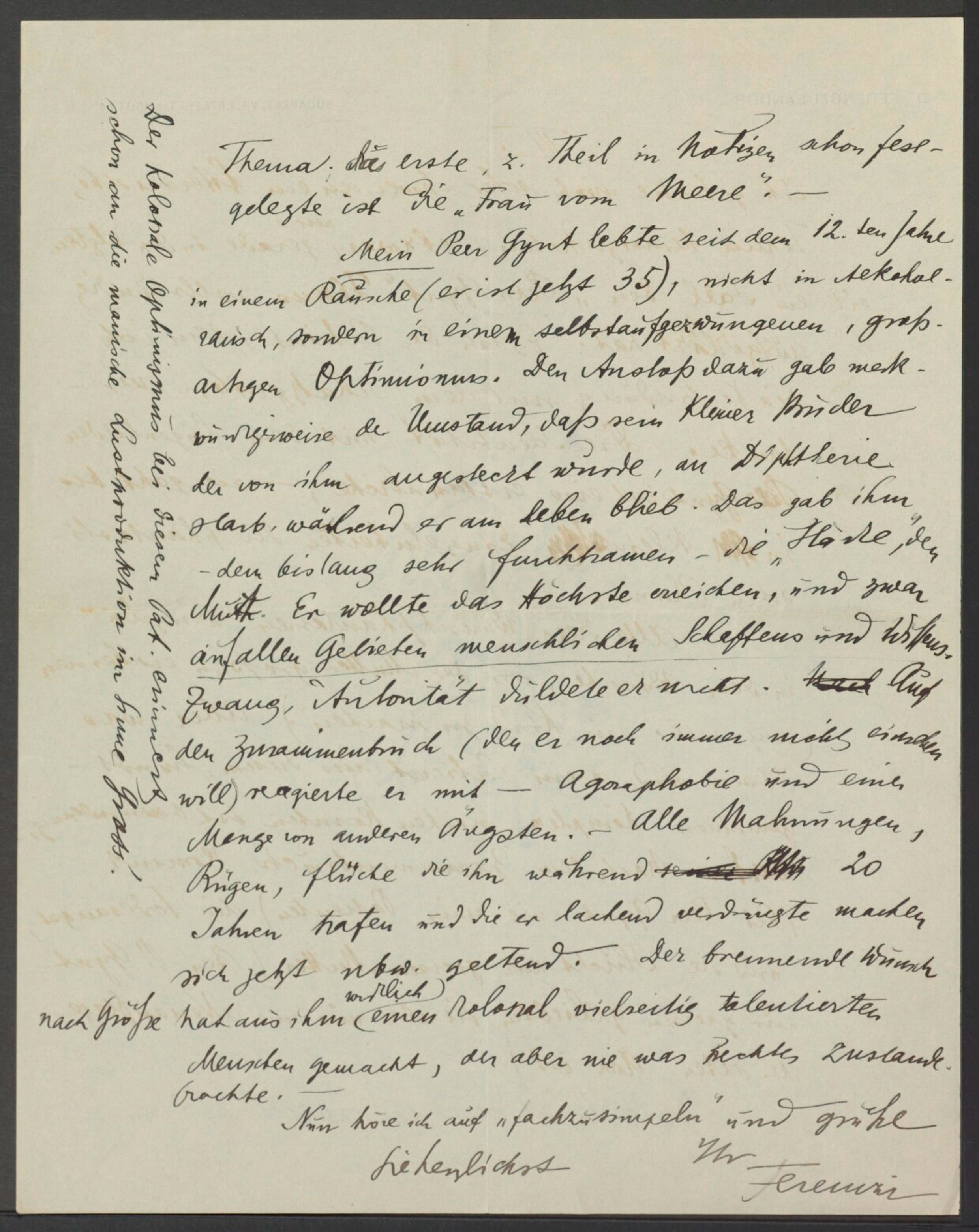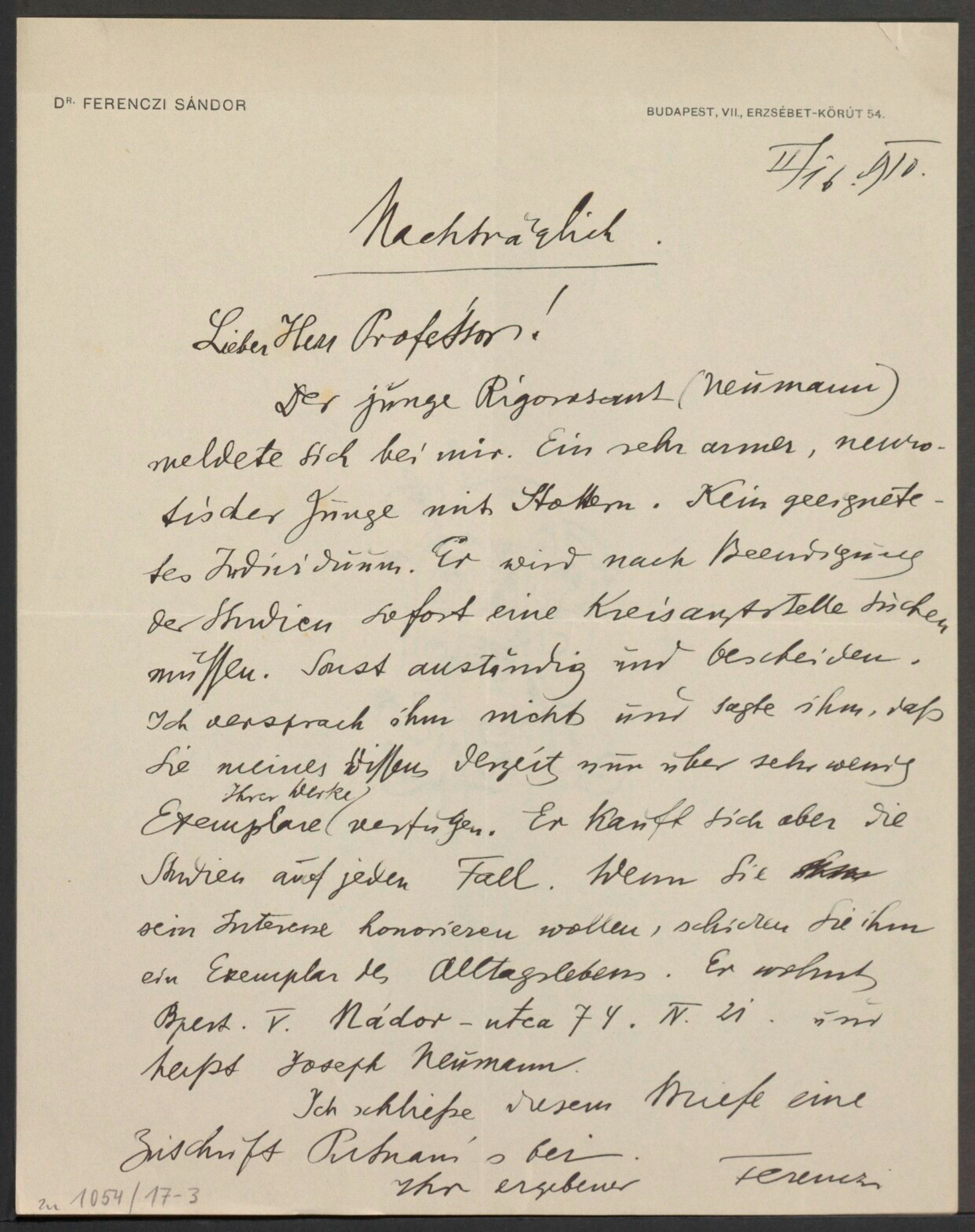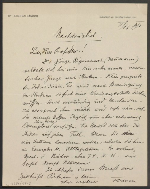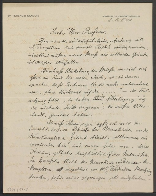 Freud, Sigmund, 1856-1939 [VerfasserIn] ; Ferenczi, Sándor, 1873-1933 [AdressatIn]