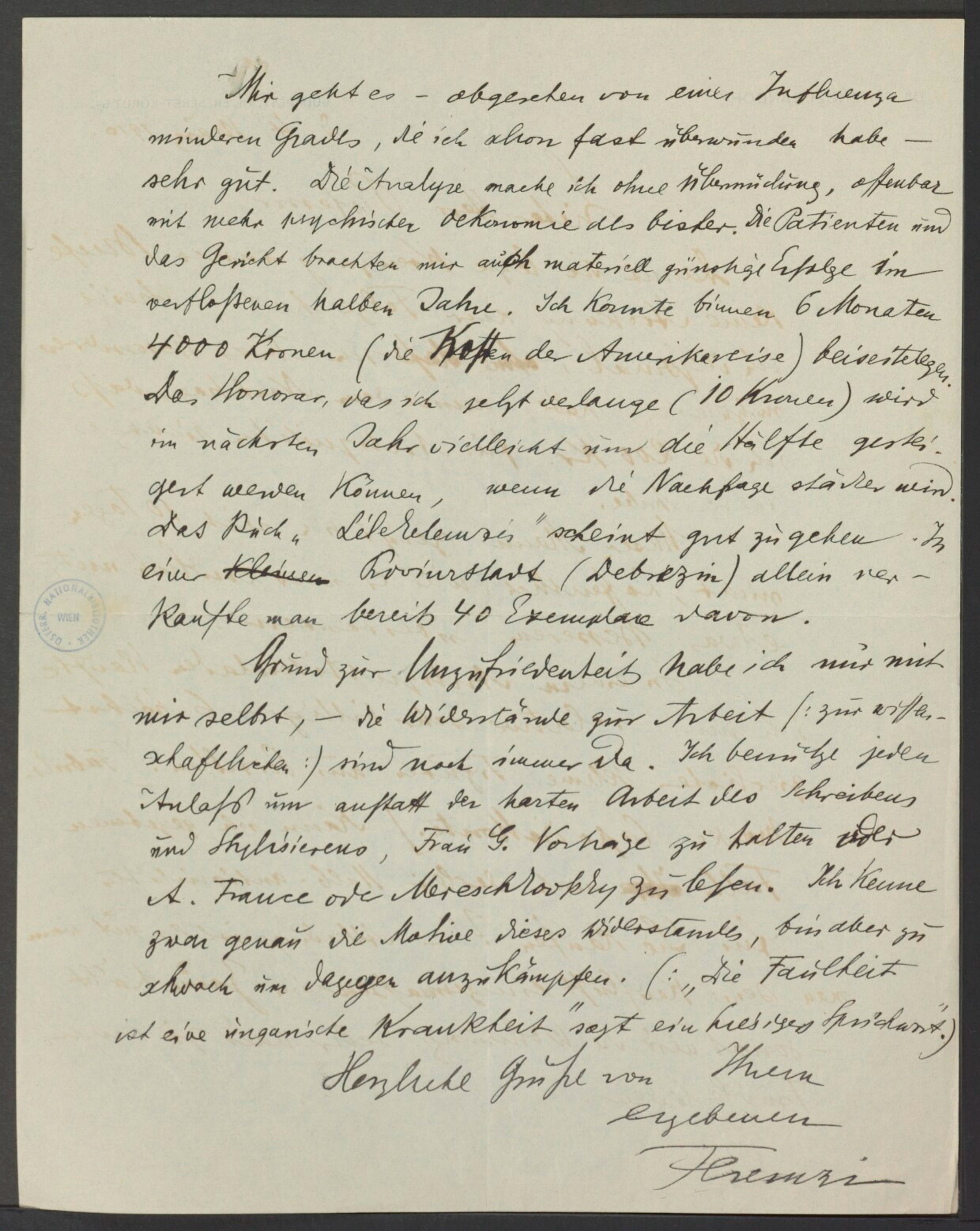 Freud, Sigmund, 1856-1939 [VerfasserIn] ; Ferenczi, Sándor, 1873-1933 [AdressatIn]